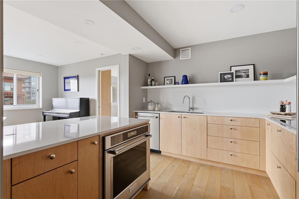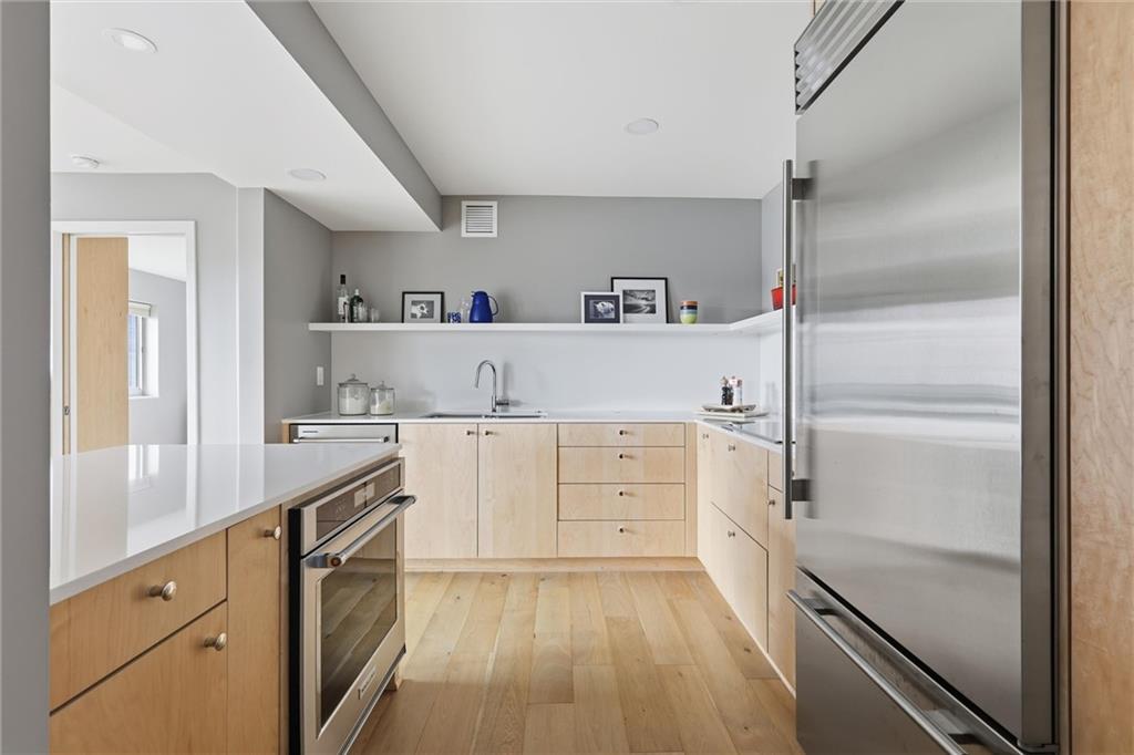 Step into this stunningly reimagined south-facing residence on an upper floor, drenched in natural sunlight. Every inch of this home has been thoughtfully renovated with luxurious upgrades, including a sleek, high-end kitchen, impeccably designed brand-new bathrooms, elegant flooring, and new sliders and windows that frame the beautiful views. Originally a two-bedroom layout, the space has been smartly reconfigured to create an expansive kitchen and dining area, perfect for entertaining or simply enjoying the elevated lifestyle this home offers. Step out onto the private balcony, your own serene retreat, where you can soak in sweeping views of lush green space to the south. This is more than a home—it's a statement of sophisticated living.