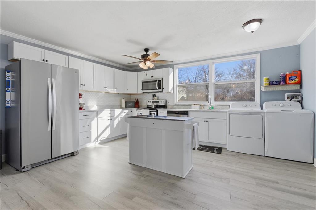 Like new! Nearly every major component has been replaced within the last 18 months, including a metal roof, vinyl siding, vinyl windows, HVAC, water heater, appliances, flooring, cabinets, and fresh paint. Enjoy this beautifully updated 2-bedroom, 1-bath home offering over 1,100 sq ft of living space in the heart of Richmond, MO. An inviting front porch welcomes you home and provides the perfect spot to enjoy your morning coffee. Inside, the open layout seamlessly transitions into a spacious dining area and kitchen, featuring ample cabinet space that is ideal for both entertaining and everyday living. Spacious bedrooms offer ample closet space, while a versatile mudroom or office is conveniently located off the kitchen with access to the back deck—perfect for grilling, chilling, and outdoor gatherings. Move-in ready with modern updates throughout, this home offers comfort, convenience, and peace of mind.
