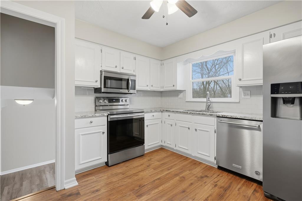 Welcome to 7614 Grandview Lane in Overland Park, KS. Discover the perfect blend of convenience and tranquility in a highly desirable neighborhood, tucked away on a quiet street yet moments from AdventHealth Shawnee Mission, 75th Street shopping and dining, I-35, and everyday essentials, offering an unbeatable location within the highly regarded Shawnee Mission School District. This 3 bedroom, 2.5 bathroom home provides 1,403 sq ft of thoughtfully designed space with a versatile side split layout balancing functionality and privacy. Inside, you will find inviting living areas filled with natural light, beautiful hardwood floors, and neutral finishes allowing you to move right in. The updated kitchen features granite countertops, stainless steel appliances, and ample cabinet space, flowing seamlessly into the main living and dining areas, ideal for everyday living and entertaining. The primary bedroom includes an ensuite bathroom, while two additional bedrooms offer flexibility for guests, a home office, or other lifestyle needs. The finished walkout basement expands your living options with a full bathroom, well suited as a family room, guest suite, workout space, or media room, while an unfinished sub basement provides excellent storage or future expansion potential. Recent updates include newer exterior paint, updated flooring in the basement and stairway, improved attic insulation added in 2024, and refreshed ceiling fans throughout. Outside, the oversized deep fenced backyard offers exceptional space and privacy for outdoor entertaining, play, gardening, or pets, along with a storage shed and attached one car garage. With easy highway access and close proximity to downtown Kansas City, the Plaza, Prairie Village, and Antioch Park, this home delivers on location, livability, and outdoor space. Step inside and explore everything this home has to offer!
