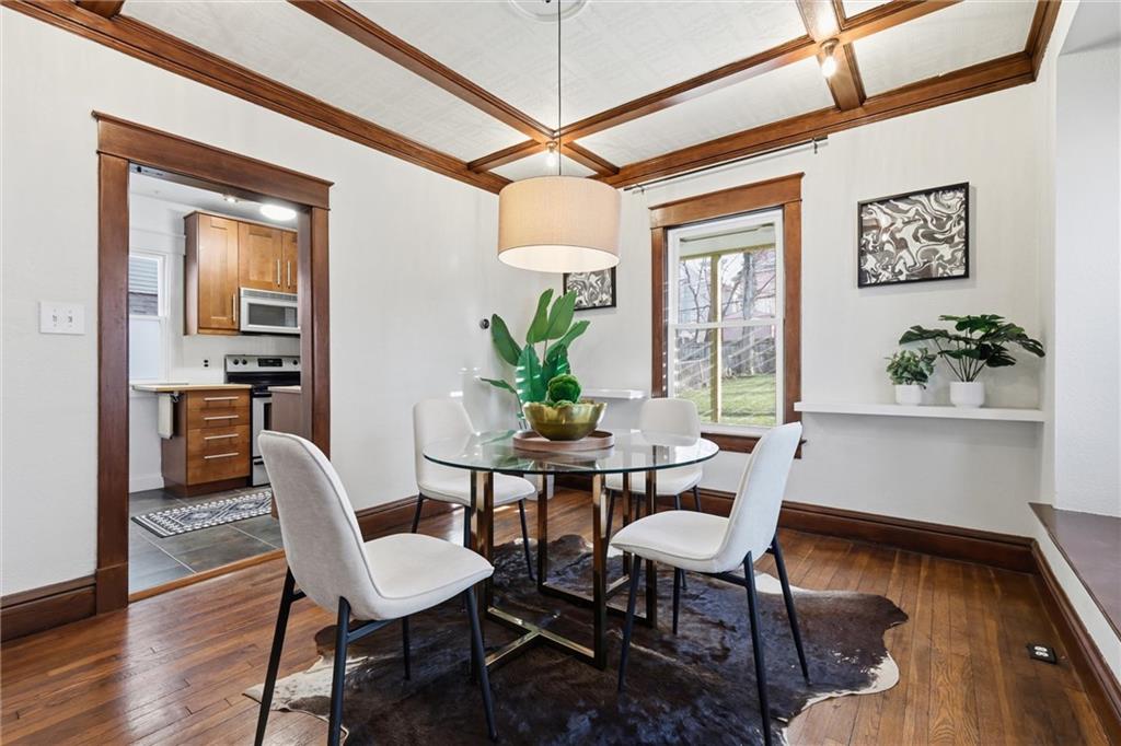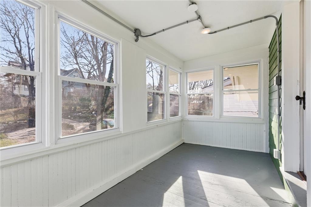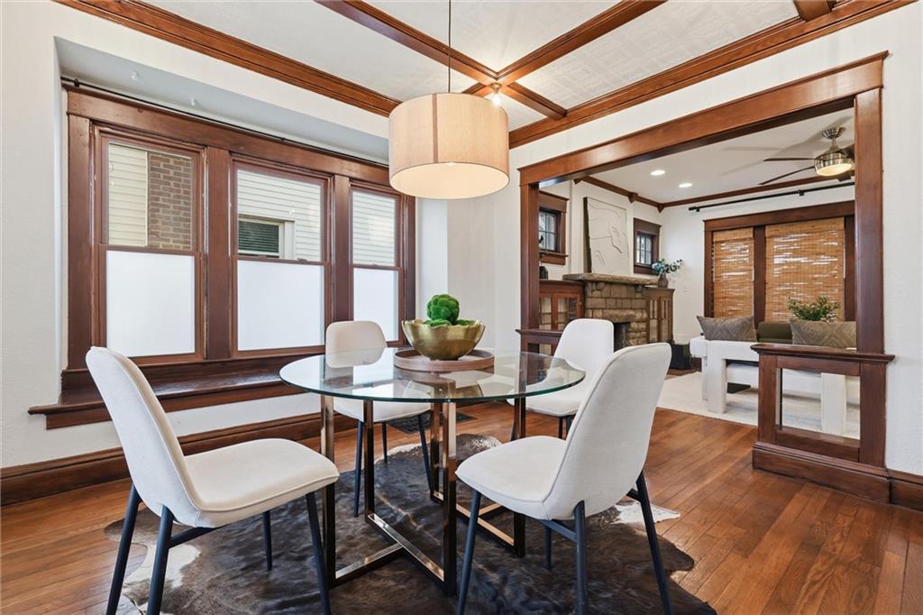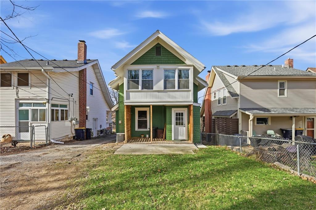 Welcome to this charming 1912 Hyde Park two-story that strikes the right balance between historic character and thoughtful updates. The covered front porch and beautifully preserved wood siding set the tone before you even step inside. Inside, you’ll find the details you want in a century-old home. Original trim, hardwood floors, and built-ins, paired with updates that make everyday living easy. The main level offers a functional, open living space anchored by a striking stone fireplace. The dining room features a large bay window that’s perfect for plants, a cozy seating nook, or morning coffee. The galley kitchen includes updated cabinets and countertops while still showcasing original built-ins for displaying your favorite glassware or china, plus built-in spice storage. Additional storage near the back door adds even more practicality. Upstairs are two bedrooms, including a primary with a walk-in closet, something you rarely see in a home of this era. The second bedroom opens to a three-season sunroom, ideal for spring, summer, and fall mornings or quiet evenings. Out back, you’ll find a surprisingly spacious yard with off-street parking, another hard-to-find feature in Hyde Park. This home has been well loved, well maintained, and is ready for its next owner to carry the story forward.