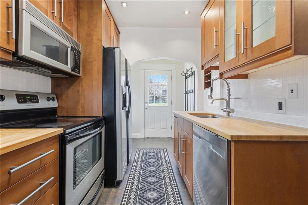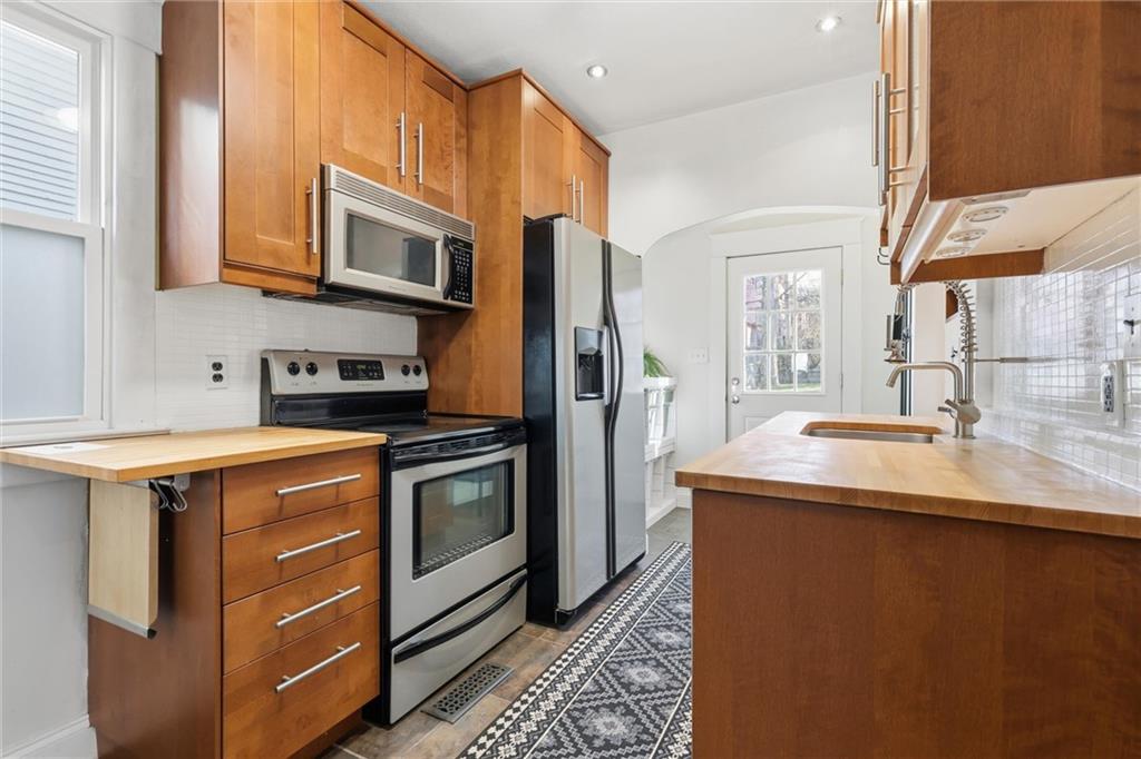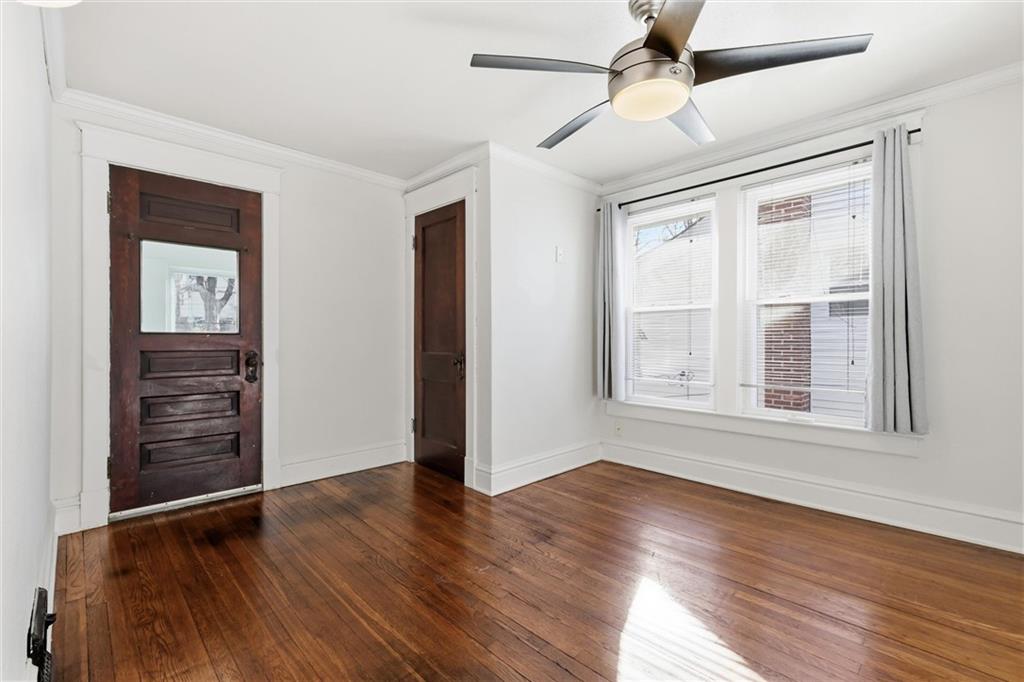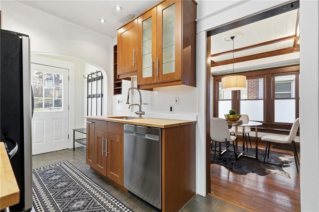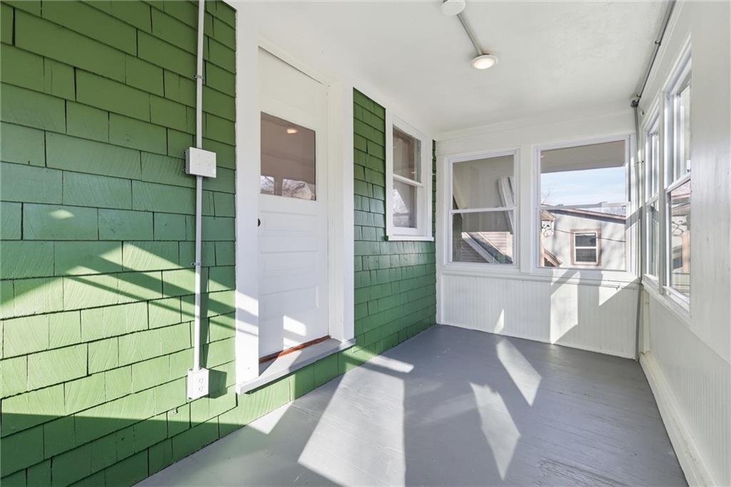 Welcome to this charming 1912 Hyde Park two-story that strikes the right balance between historic character and thoughtful updates. The covered front porch and beautifully preserved wood siding set the tone before you even step inside. Inside, you’ll find the details you want in a century-old home. Original trim, hardwood floors, and built-ins, paired with updates that make everyday living easy. The main level offers a functional, open living space anchored by a striking stone fireplace. The dining room features a large bay window that’s perfect for plants, a cozy seating nook, or morning coffee. The galley kitchen includes updated cabinets and countertops while still showcasing original built-ins for displaying your favorite glassware or china, plus built-in spice storage. Additional storage near the back door adds even more practicality. Upstairs are two bedrooms, including a primary with a walk-in closet, something you rarely see in a home of this era. The second bedroom opens to a three-season sunroom, ideal for spring, summer, and fall mornings or quiet evenings. Out back, you’ll find a surprisingly spacious yard with off-street parking, another hard-to-find feature in Hyde Park. This home has been well loved, well maintained, and is ready for its next owner to carry the story forward.