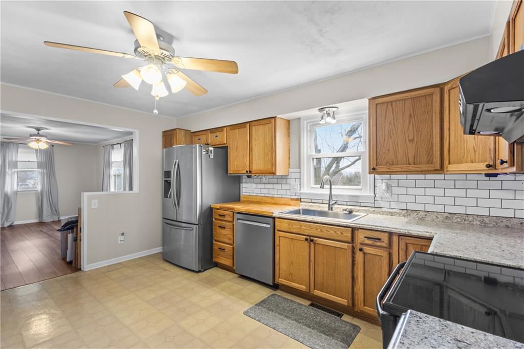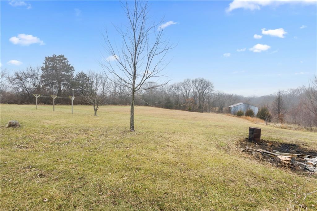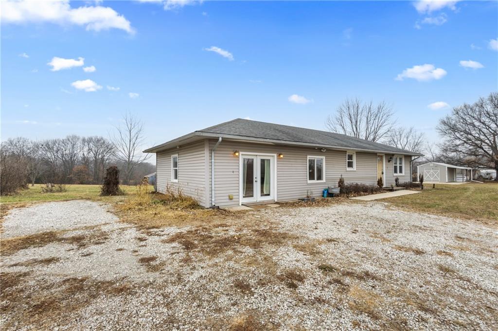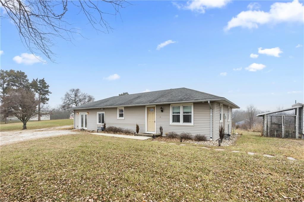 Welcome to this inviting Excelsior Springs home, where practicality, modern upgrades, and comfortable style come together in one affordable package. The main floor offers an impressive 1,824 square feet of living space, thoughtfully arranged for both everyday living and entertaining. Flanking the kitchen are two versatile rooms—ideal for a formal dining room, cozy sitting area, or a productive home office. Electrical was updated in 2007. Nestled on 4.82 picturesque acres, this property delivers a true country retreat with all the conveniences you need. A 700-square-foot dual-stall barn with a hayloft provides ample storage or hobby space. The 12×20 temperature-controlled workshop, built in 2018, features a 14-foot south-facing workspace, a covered east-side porch with lighting, and exterior outlets. The shed is wired for power and network connectivity and includes two installed security cameras. A functional chicken coop is also wired for heat lamps. Nature lovers will appreciate the variety of plantings, including one apple and three pear trees, as well as walking trails that wind through the acreage. A serene pond completes the landscape, offering a peaceful place to relax. The septic tank and main line were replaced in 2024 for added peace of mind. A Husqvarna zero-turn mower stays with the property. All appliances stay—including the refrigerator, microwave, and stackable washer/dryer—and the convenience of main-level laundry makes daily living even easier.