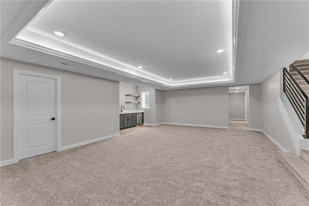The Bridgeport III floorplan built by Drippé Homes. Open concept daylight basement with tons of natural light! Kitchen furnished with stainless appliances, gas cooktop, hood vent, microwave, wall oven, quartz countertops, large island with oversized sink and spacious walk in pantry. Three bedrooms on main with primary opposite other bedrooms. Ensuite features double vanity, tiled walk-in shower, private water closet and gigantic closet with pass through to laundry. Mudroom off garage with boot bench. Finished basement with two additional bedrooms and rec room complete with wet bar, ready for hosting the next big game. Cozy up to the fireplace in the living room or enjoy the sunrise from the covered composite deck. Home backs to tree-line providing ultimate privacy with sod and sprinkler system included. Unfinished basement storage and three car garage provide plenty of storage. Estimated completion March 2026.