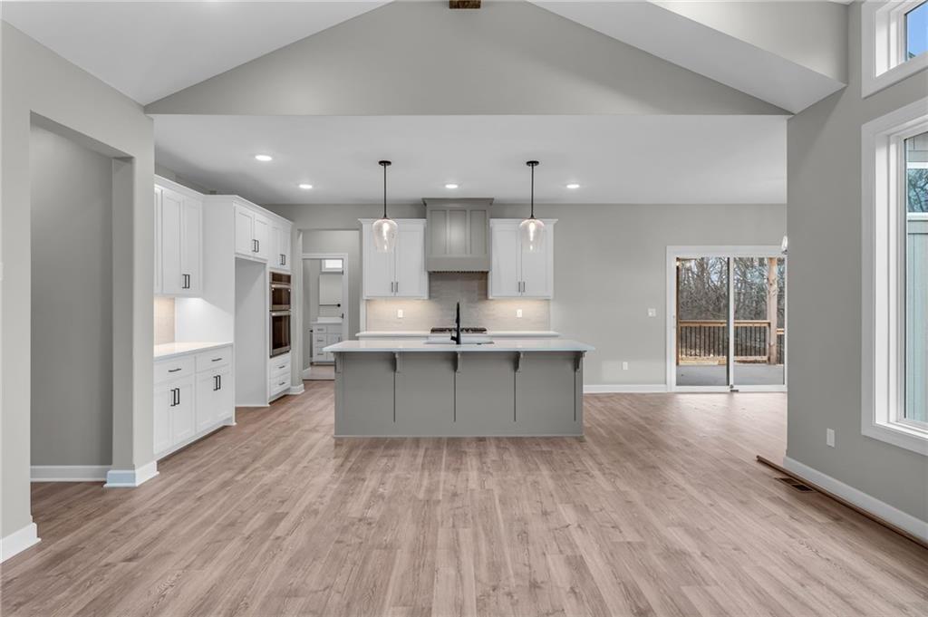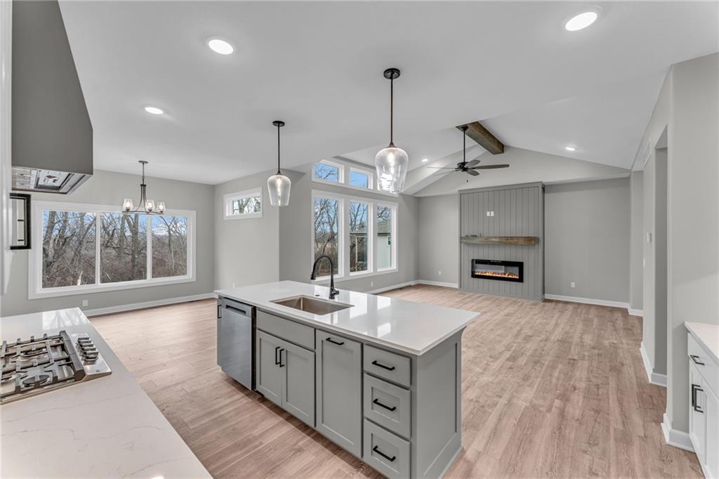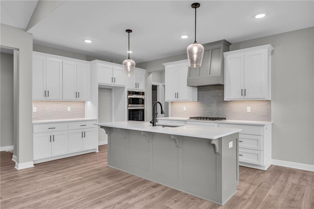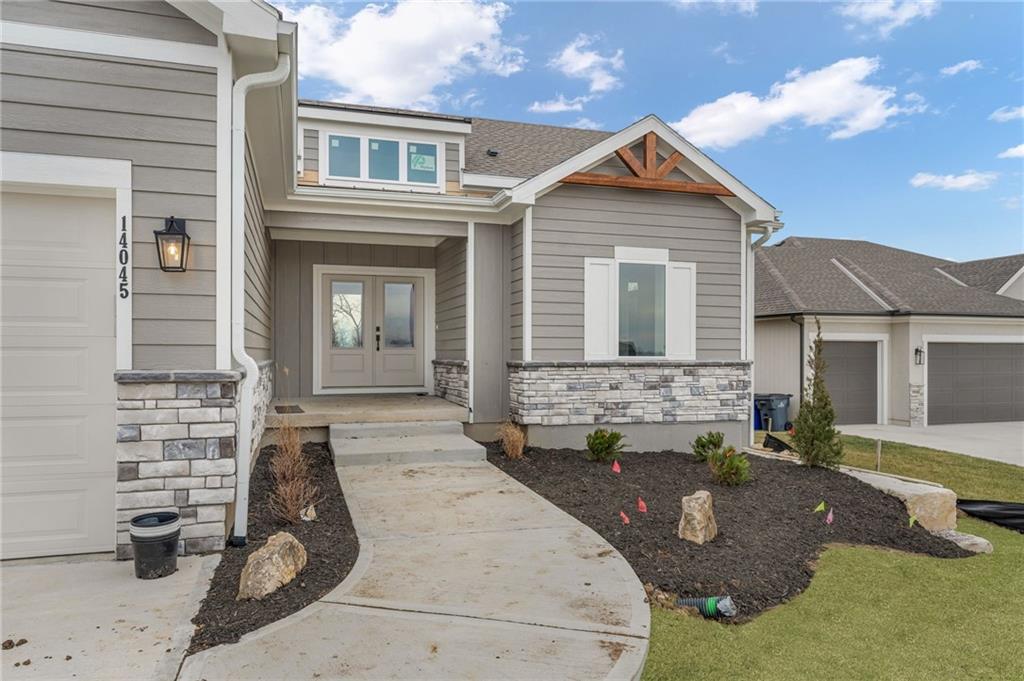 The Bridgeport II Estate floorplan built by Drippé Homes. Open concept daylight basement with tons of natural light! Kitchen furnished with stainless appliances, gas cooktop, hood vent, microwave, wall oven, quartz countertops, large island with oversized sink and spacious walk in pantry. Two bedrooms on main with primary opposite other bedroom. Ensuite features double vanity, tiled walk-in shower, private water closet and gigantic closet with pass through to laundry. Mudroom off garage with boot bench. Finished basement with two additional bedrooms and rec room complete with wet bar, ready for hosting the next big game. Cozy up to the fireplace in the living room or enjoy the sunrise from the covered composite deck. Home backs to tree-line providing ultimate privacy with sod and sprinkler system included. Unfinished basement storage, built-ins and three car garage provide plenty of storage. Almost ready for your personal touch - schedule a showing today!