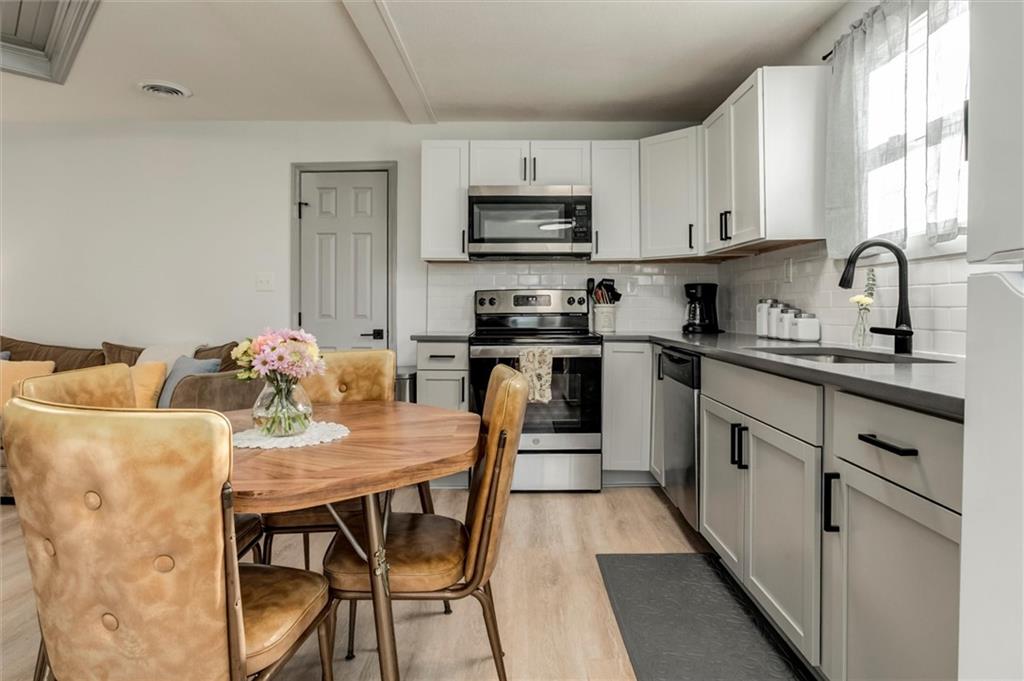 Charming, move-in-ready 3 bed, 1 bath home with modern updates throughout, located on a large corner lot. Perfect for a first-time home buyer, this home features a cute, inviting front porch, spacious backyard, and storm shelter for added peace of mind. Conveniently located just a few minutes from Hwy 169 and an easy 18 minute commute to downtown Olathe. Updated and ready for new owners, this one is a must see!