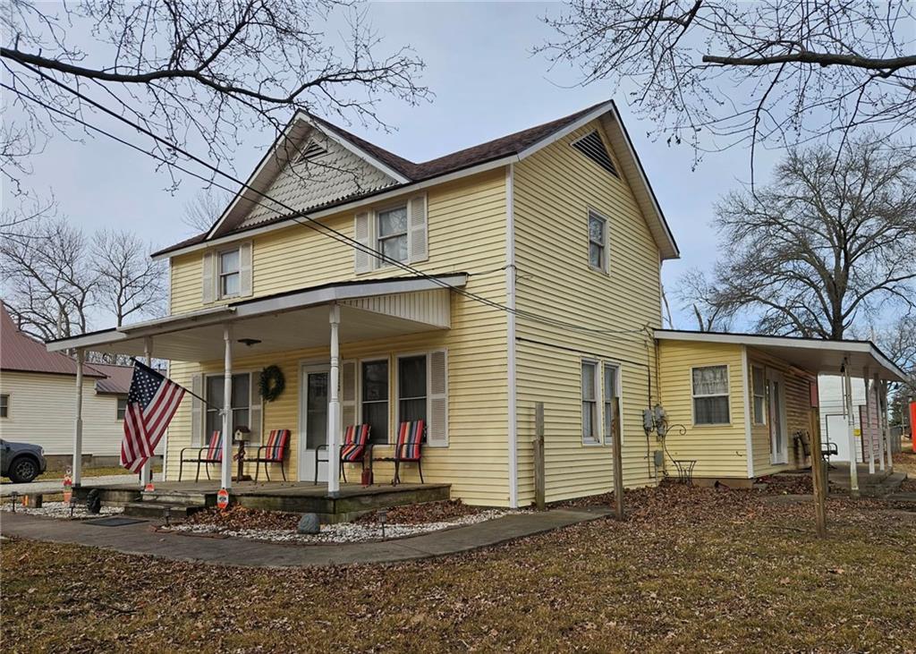 Welcome to 112 W Alberty Rd, a home that blends comfort, space, and everyday convenience in a great location convenient to the country club and Pittsburg. Whether you’re looking for your first home, your next move, or a smart investment, this property offers plenty of potential to make it your own. This home boasts a covered porch that spans the front of the home, providing cover from the elements. The large living room welcomes you home; stairs lead from the living room to two bedrooms, the smaller one is presently being used as an office. The larger bedroom has plenty of natural light, storage and access to the half-bathroom. From the living room, you access a large kitchen features solid wood cabinetry, stainless steel appliances and a tasteful wood ceiling. The kitchen is attached to the dining area, which offers a sliding glass door, providing the warmth of morning sunshine and access to the covered back porch and adjacent patio. The laundry room off the kitchen boasts storage and access to the main floor bathroom. The bathroom features a large, walk-in shower and storage space. An ample mudroom is off the bathroom and kitchen, near the back door a perfect landing place for your bags and shoes. Upstairs, you'll find two bedrooms; the smaller one is presently being used as an office. The larger bedroom has plenty of natural light, storage, and access to the half-bathroom. The large, shaded yard, 2-car garage, and additional outbuilding offer plenty of storage. New Roof added 2025 Call today to make this home yours!