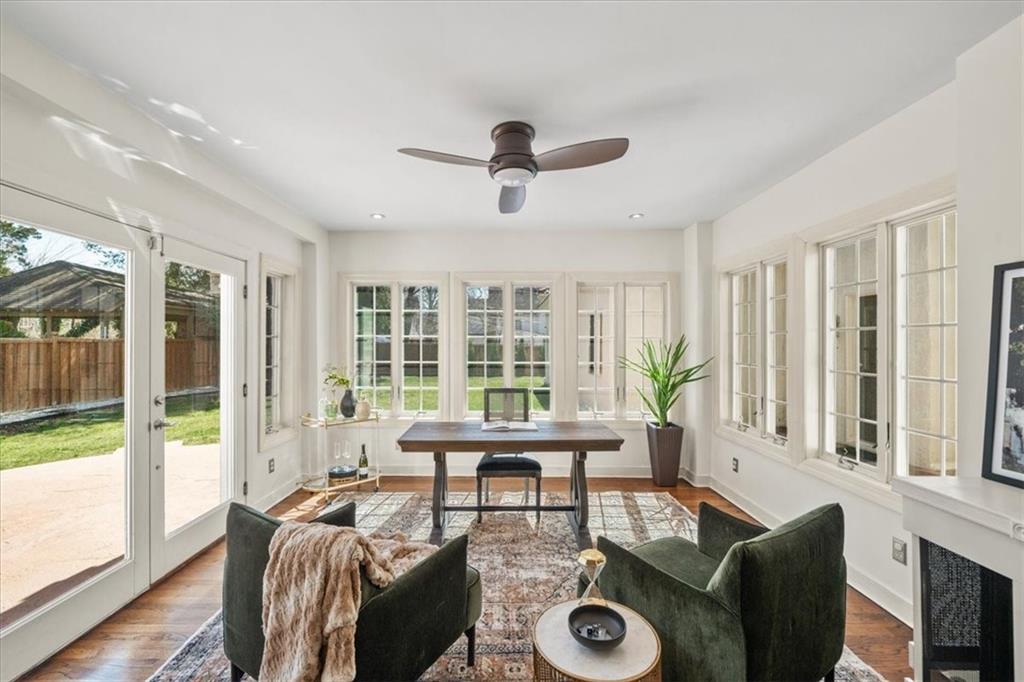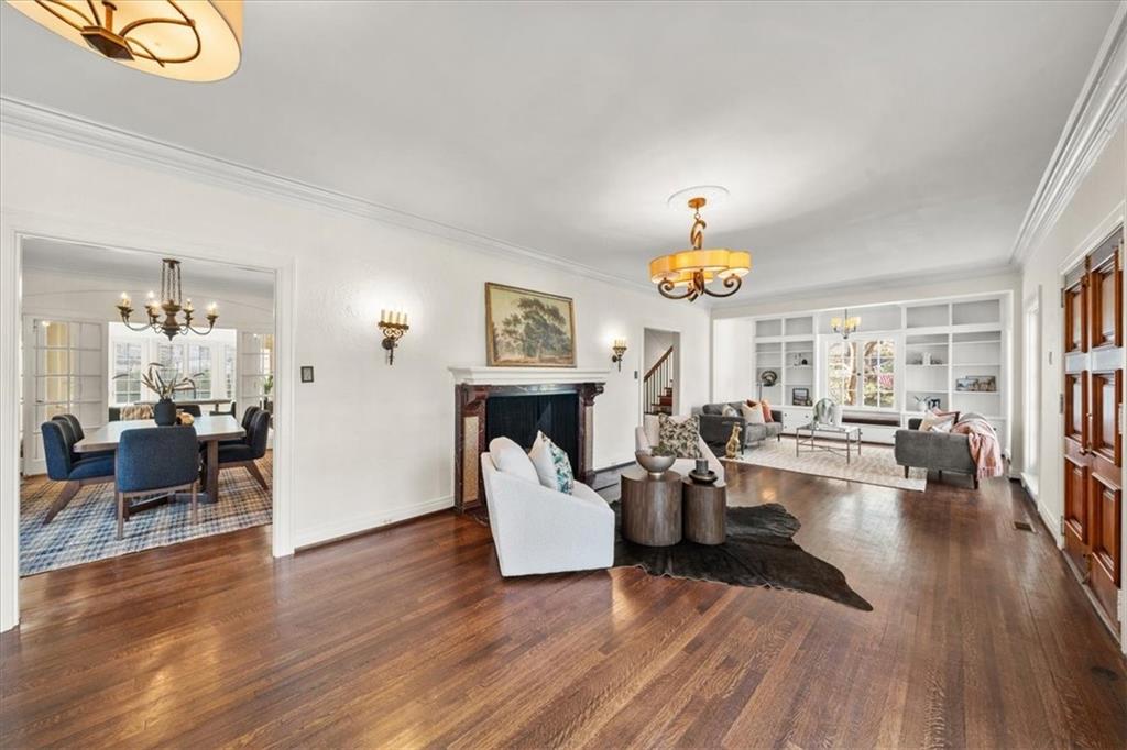 Thoughtfully updated and rich in character, this stunning Spanish-style home blends timeless architecture with modern improvements in the heart of Brookside. Recent upgrades—including fresh paint, new attic insulation, updated electrical, and refreshed landscaping—offer peace of mind while preserving the home’s original charm. Step through the solid wood double doors into an impressive living room filled with natural light from oversized windows. This remarkable space features beautifully maintained hardwood floors, built-in shelving, a stone fireplace, and striking light fixtures that create a warm yet sophisticated atmosphere. Tall ceilings and detailed molding add to the home’s classic appeal. The spacious dining room is ideal for hosting, comfortably accommodating large gatherings and flowing seamlessly into the modern kitchen, complete with granite countertops and ample cabinetry. Just beyond, the sunroom offers a versatile space perfect for a home office, or playroom, with direct access to the expansive backyard—large enough for a garden, pool, and still plenty of green space. The main level also features one of two primary suites, highlighted by a charming clawfoot tub, along with a convenient laundry area and an additional flexible room ideal for a playroom or den. The home’s Spanish influence continues with a beautifully tiled staircase, adding a unique touch. Upstairs, you’ll find two generously sized secondary bedrooms and a full bath. The second-level primary suite offers a true retreat, featuring a massive walk-in closet, private balcony access, and a fully updated, modern bathroom. Additional highlights include a 3-car garage, a large front yard, and a blend of hardwood and terracotta tile flooring throughout. Ideally located just minutes from Brookside favorites like the Trolley Track Trail, Earl’s Premier, and The Brooksider, with easy access to the Plaza and downtown Kansas City, this home offers a rare combination of character, space, and location.