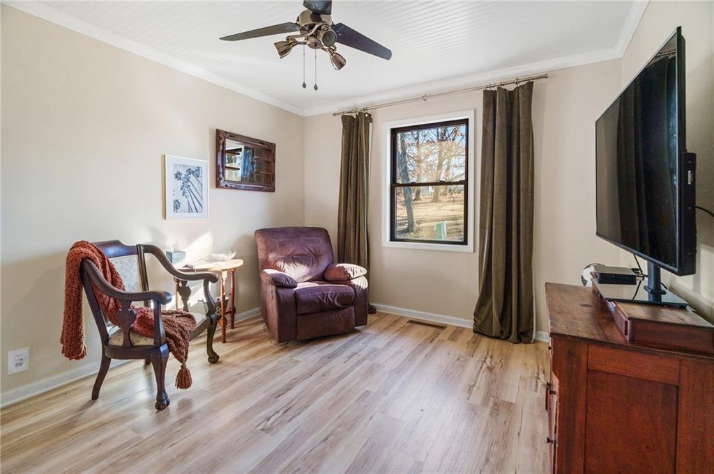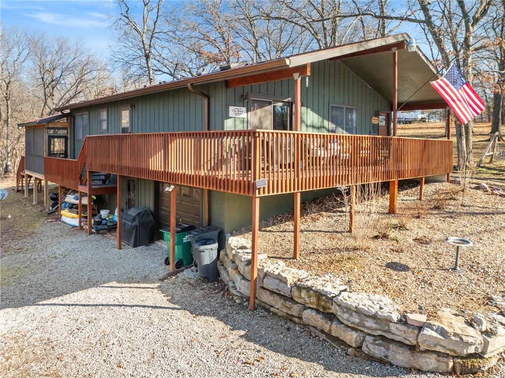 Lake Viking rare find with a boat slip at the Yacht Club. This property is situated on 1.3 acres near the South Entrance and offers a private, wooded setting with abundant wildlife and a treehouse-like feel. The home features 3 bedrooms and 3 bathrooms with numerous recent updates, including a new roof, new flooring, shiplap accent walls and ceilings, and fresh paint throughout. The open-concept kitchen includes freshly painted cabinets, quartz countertops, and comes fully equipped with appliances, including the washer and dryer. The primary bedroom offers a shower and a large window with peaceful views of the wooded lot. For those seeking a quiet retreat, the large covered and screened-in porch provides an ideal space to relax and enjoy the natural surroundings. The unfinished basement includes a pellet stove and offers excellent potential for a workshop or future finished living space. Additional features include a one-car garage. The sellers are open to offers on furnishings, and the boat is available for purchase separately.
