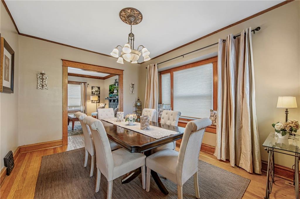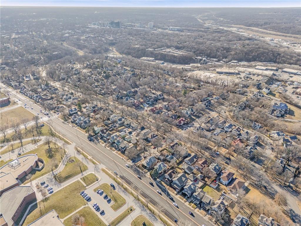 Step into the charm of this rare 1910 Kansas City home, where timeless character meets an unbeatable location near downtown, the Plaza, and across the street from Metropolitan Community College. Offering 4 bedrooms and 2.5 bathrooms, this property blends historic charm with spacious, functional living. From the moment you arrive, the inviting front porch with brick detailing welcomes you inside. The grand foyer showcases beautiful natural woodwork that continues throughout much of the home, from the staircase and trim to the stunning decorative windows. Hardwood floors add warmth and character while enhancing the home’s timeless architectural features. The main level features generous spaces ideal for entertaining. The light-filled living room includes a beautiful fireplace and flows seamlessly into the dining room, highlighted by large windows. The kitchen offers an eat-in option and plenty of space for everyday living. Bedrooms are thoughtfully arranged across the upper levels. The second floor includes three bedrooms and a full bathroom, while the third level features a spacious bedroom with its own full bathroom, perfect for a private retreat or guest suite. Outside, enjoy a lovely deck and fenced yard, ideal for relaxing or hosting gatherings. The extended driveway provides ample parking for multiple vehicles, a rare find for the area. With its character, space, and convenient location, this home offers a wonderful opportunity in the heart of Kansas City.