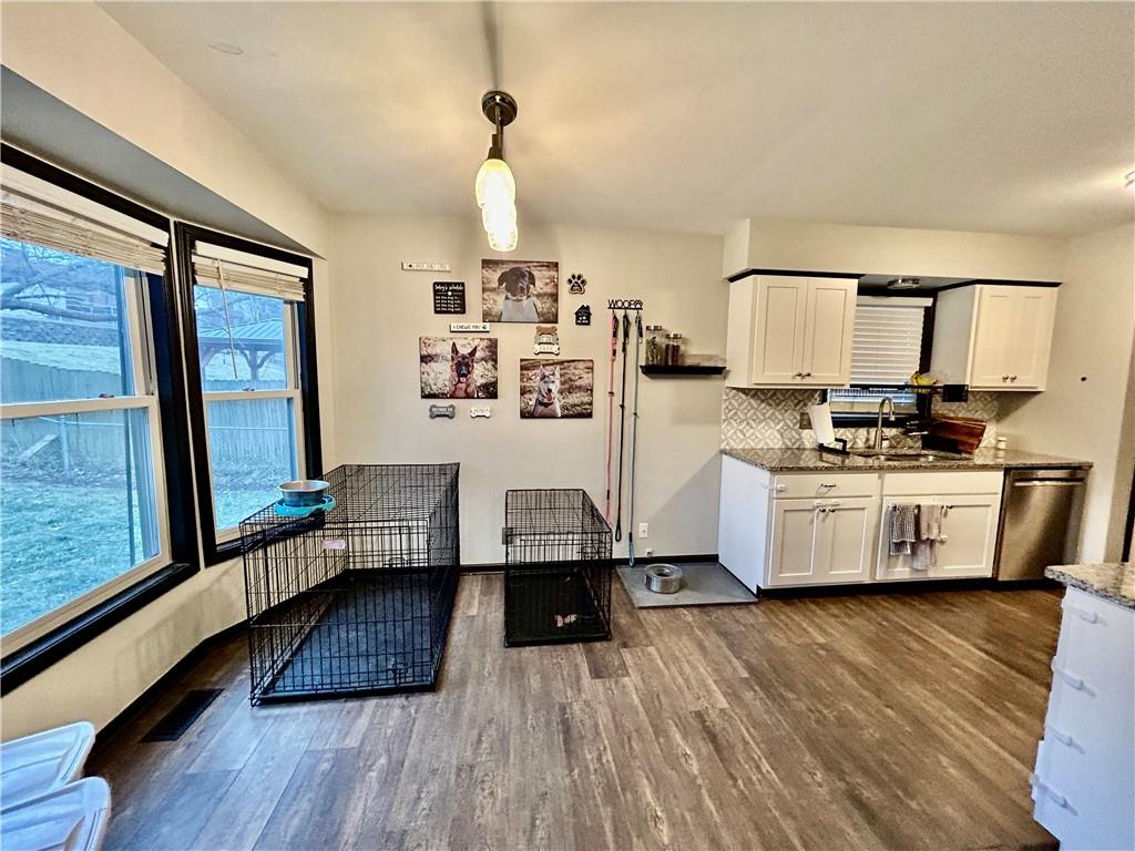 Beautiful raised ranch home on a quiet road. Situated convenient to I-29, Frederick ave, and N belt highway. Enjoy cozy winter nights next to the fireplace or entertain guests in the finished basement rec space. This home boasts 3 beds with additional 4th non conforming bedroom on basement level, 2 and half baths, formal dining, eat in kitchen, large fenced in backyard with deck, large 2 car basement garage and bedroom level laundry. Updates include flooring, newer roof, furnace, hot water tank, A/C, sprinkler system and appliances.