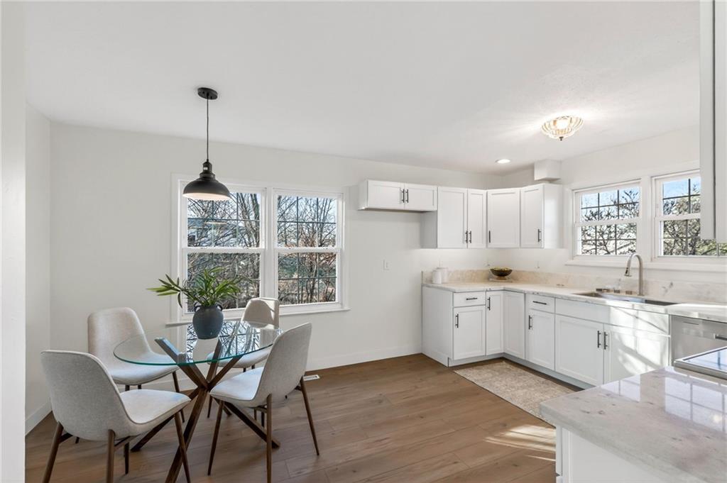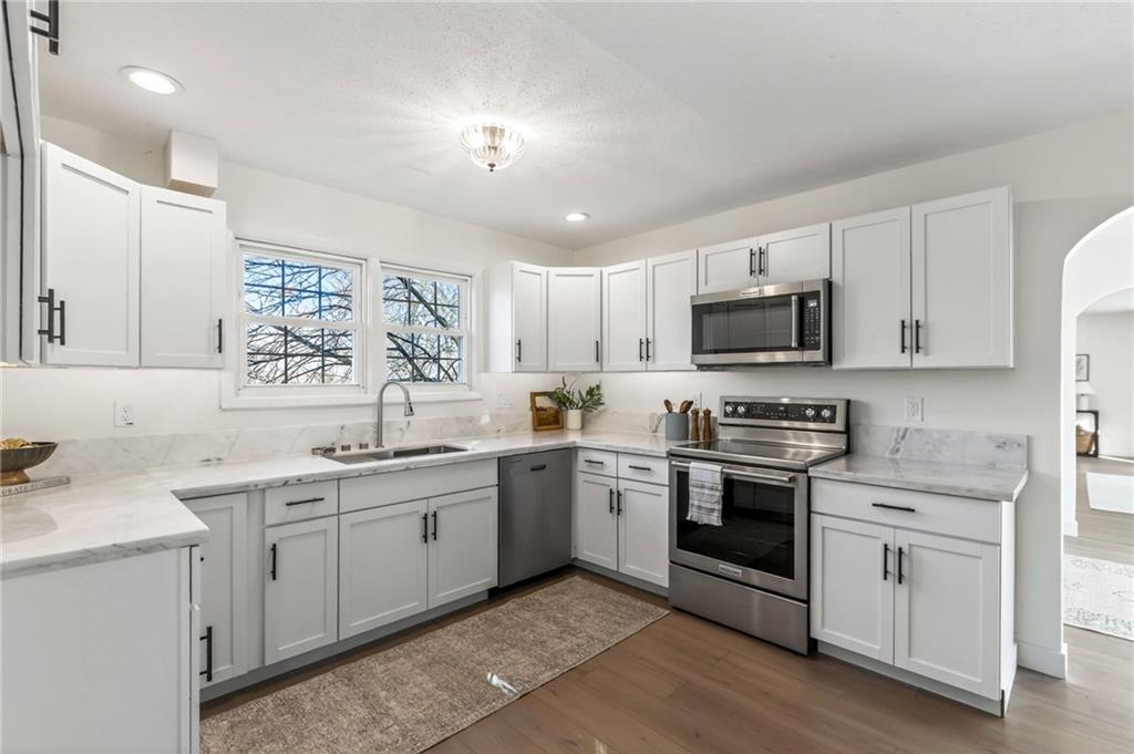 Sitting on over half an acre with an abundance of driveway and parking space, this fully remodeled home immediately stands out for its space, flexibility, and freedom—no HOA included. Whether you need room for extra vehicles, a trailer, or just love having space to spread out, this property delivers from the moment you arrive. Inside, everything has been thoughtfully updated. The brand-new kitchen is a true highlight with gorgeous countertops, all-new cabinetry, modern appliances, and a deep sink that’s both stylish and functional. New floors throughout elevate the entire home and truly are amazing—durable, beautiful, and cohesive. The main living area is filled with natural light and centered around the perfect fireplace, creating a warm, inviting space to relax or entertain. You’ll also love the built-ins, offering smart organization without sacrificing style. The main floor includes all three bedrooms, family room, entryway, eat-in kitchen, two full bathrooms, and a flex space that steps outside to your own private retreat. The backyard feels like a personal oasis when everything is green, with plenty of room to play, garden, or simply unwind. There’s a shed for additional storage and in the basement is an oversized garage that’s perfect for an extra car, a workshop, hobby space, or even finishing out into a man cave or separate office space. Low-maintenance vinyl siding keeps upkeep easy so you can enjoy the space instead of working on it. This home offers updates, land, storage, and versatility—all in one incredible package. You're not going to want to miss it