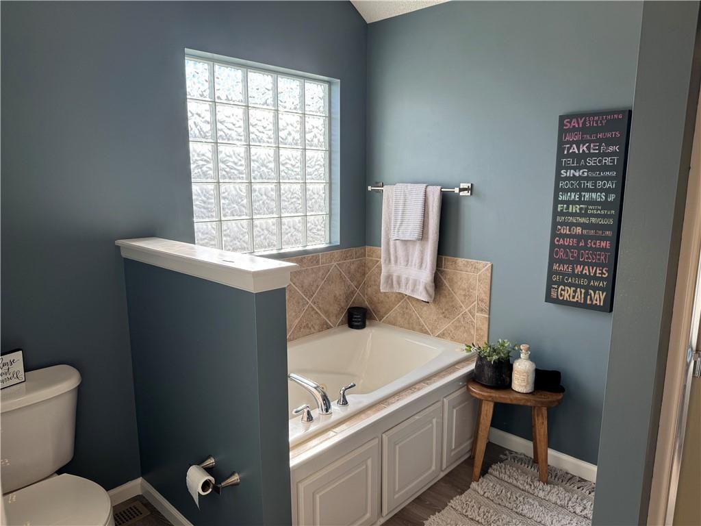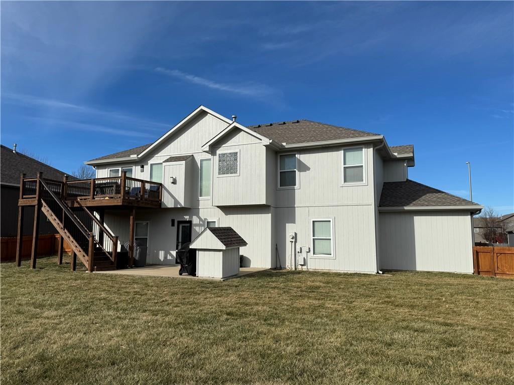 Welcome home to this beautifully maintained 3 bedroom, 2.5-bath residence offering space, style, and functionality throughout. The main level features soaring ceilings, abundant natural light, and a welcoming living room centered around a cozy fireplace- perfect for everyday living or entertaining. The kitchen is both stylish and functional with white cabinetry, granite countertops, stainless steel appliances, tile backsplash, and plenty of counter and storage space. The adjacent dining area opens to the deck, creating an easy flow for indoor-outdoor living. The spacious primary suite offers a peaceful retreat with a tray ceiling, generous closet space, and a private ensuite bath featuring a soaking tub and natural light from the glass block window. Two additional bedrooms and a full bath complete the main level. The finished lower level provides even more living space with a family room, second fireplace, half bath, and charming custom nook - ideal for a play area, or pet retreat. This level is perfect for movie nights, guests, or a home office setup. Enjoy the outdoors from the elevated deck overlooking the backyard, with stairs leading down to the patio- ideal for grilling, relaxing, or entertaining. Addition highlights include a 3-car garage, neutral color palette, and thoughtful finishes throughout. HOA amenities include a neighborhood pool, and a walking trail just steps away! This home is move-in ready with space to live, relax, and entertain- inside and out! Don't miss your chance to see this one in person.