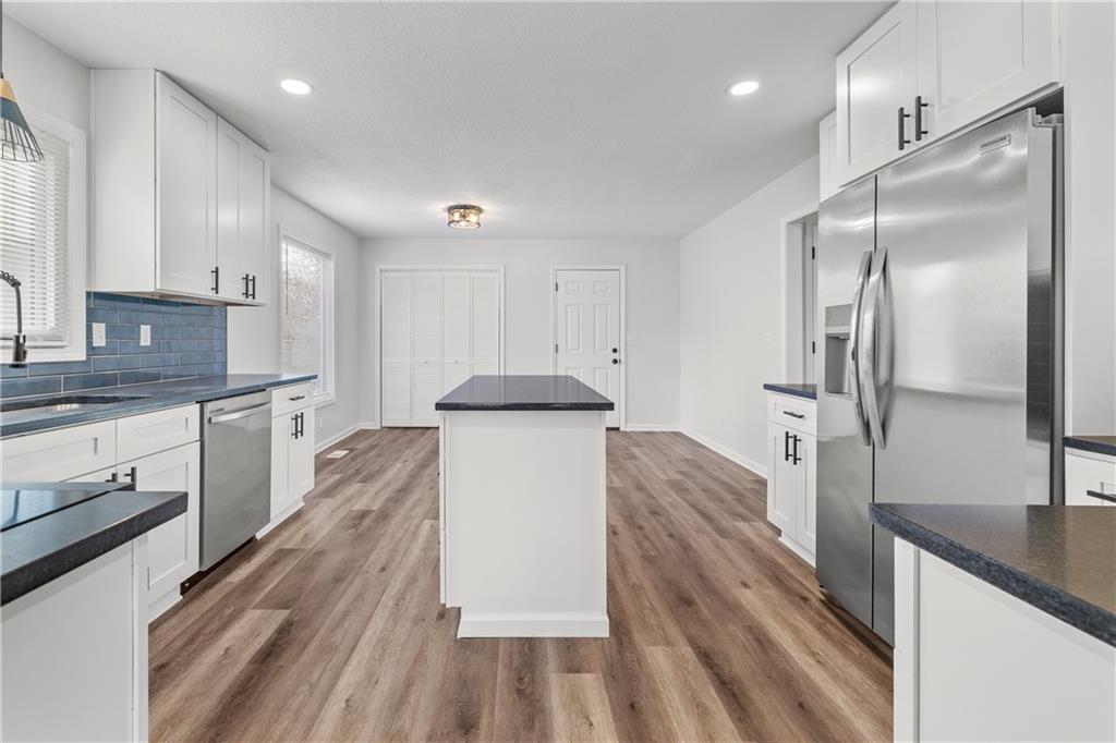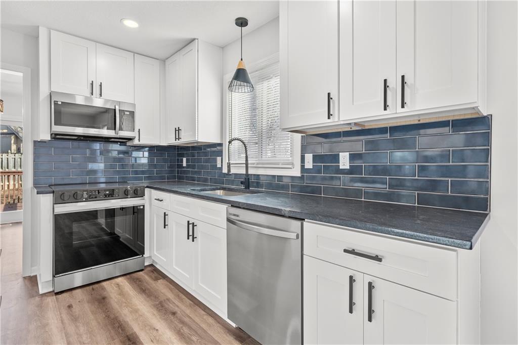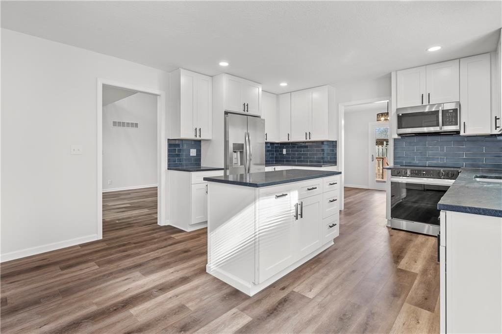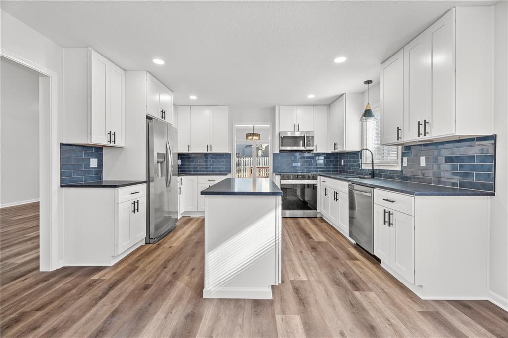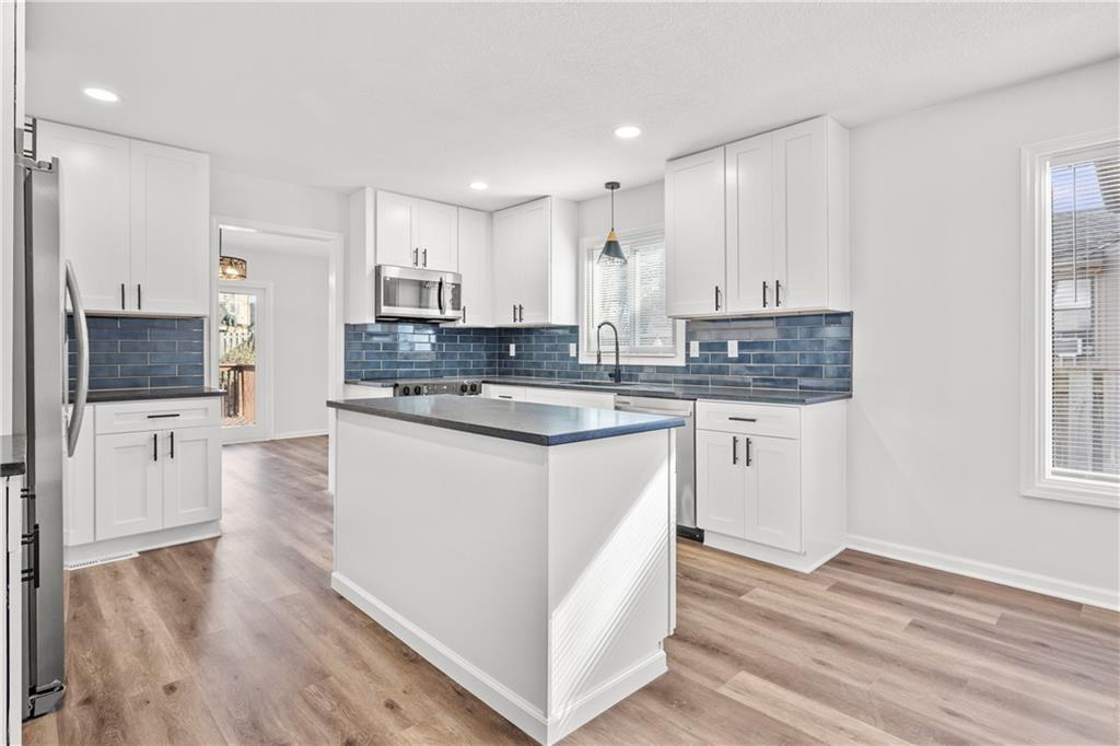 Welcome to this beautifully renovated home in that's been thoughtfully updated from top to bottom and is truly move in ready with a layout that works for today’s lifestyles. The main level features a spacious primary suite along with open, comfortable living areas that flow effortlessly for both everyday living and entertaining. Upstairs you will find additional bedrooms that provide great separation and privacy, while the finished basement expands the living space even further. The lower level includes a bedroom, a dedicated office that could easily function as a non conforming fifth bedroom, and plenty of room for a second living area, home gym, or media space. Fresh finishes and modern updates throughout create a clean, current feel in every room. Located just minutes from shopping, dining, and everyday conveniences, with quick access to major highways, this home offers the perfect balance of neighborhood living and easy commuting. A rare opportunity to enjoy a fully updated home in one of Olathe’s most convenient locations.