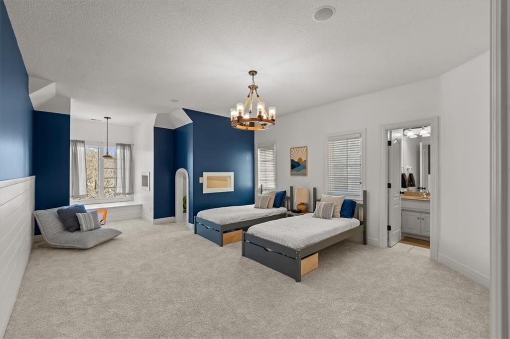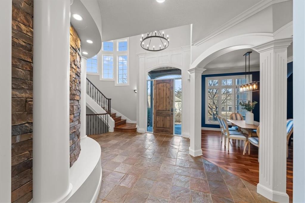 Beautiful design meets convenience and function in this architectural showpiece in the coveted Riss Lake community. With only three of these custom homes ever constructed, this Mark Bolling home will take your breath away. A hand painted mural, hidden children's nook, and 3 separate outdoor spaces, this home is truly special and not like anything you have seen at the lake. Earthy stone accent walls, beautiful wide plank walnut floors, multiple living and dining spaces and a grand kitchen make the main floor great for intimate evenings at home or perfect for entertaining. All bedrooms are spacious and privately appointed with their own en-suite baths. The owner’s suite is a true retreat, offering spa-caliber finishes including an oversized double walk-in shower and a secluded martini deck for quiet relaxation. The walkout lower level is designed to impress, featuring a full second kitchen, expansive recreation and entertainment area with a large projection screen, a dedicated workout room with sauna, and a rare suspended garage ideal for additional storage. Throughout the approximately 5,500 square feet, you’ll find custom built-ins, smart home technology by Applause Home Audio and Security, and numerous recent updates—including new carpet and new windows—enhancing both Room to spread out but a layout that still feels cozy is what makes this really feel like the perfect family home. Step outside and enjoy unparalleled access to the amenities that define Riss Lake living. Why maintain a pool when the neighborhood saltwater pool, tennis courts, and playground sit just beyond the back door, while the community’s 135-acre recreational and fishing lake is only two blocks away. Architecturally distinctive, and impeccably crafted, this home represents a rare chance to own something truly special.