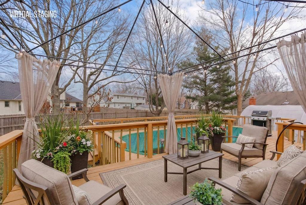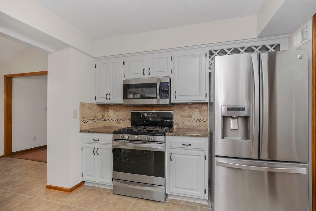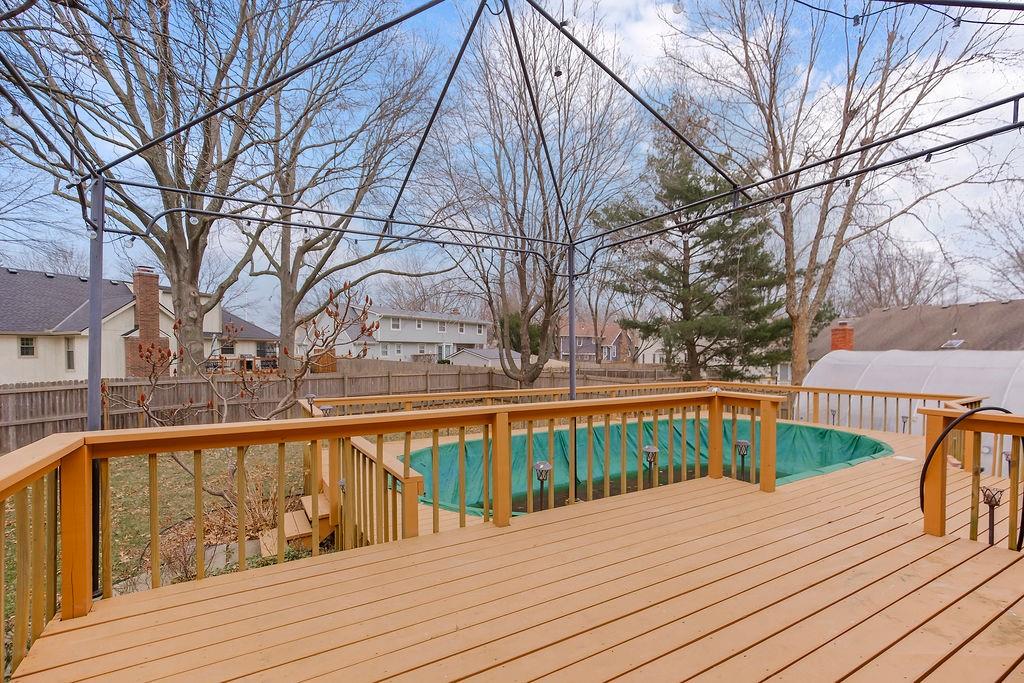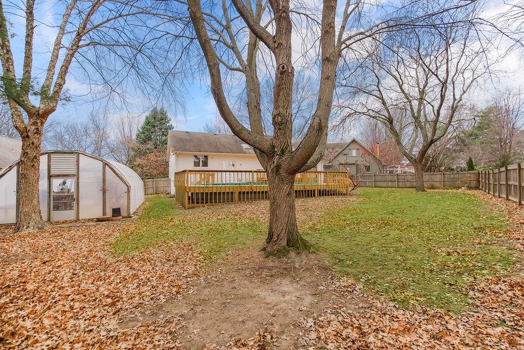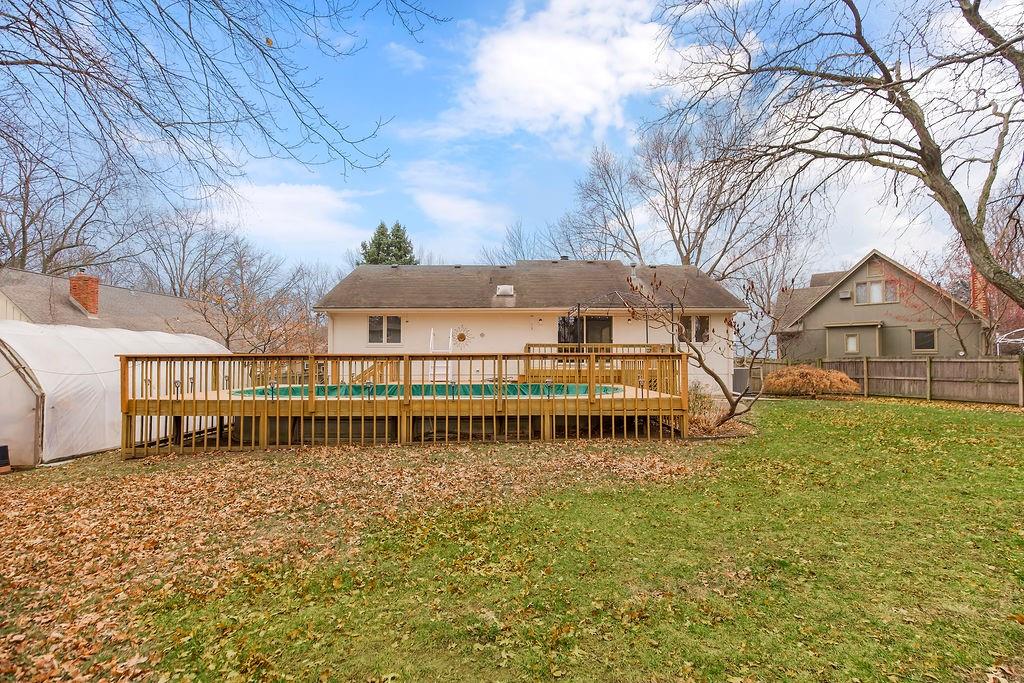 Move-in ready Great Atrium split home, available for a quick close! Virtually staged photos showcase just how cozy and charming this home can be. A welcoming entry features a dramatic accent wall—perfect for displaying artwork—along with new lighting and new carpet on the entry stairs. The vaulted great room is filled with character, offering a beautiful stone fireplace and stained-glass windows. The eat-in kitchen has been freshly painted and updated with new hardware and a new faucet; all stainless steel appliances stay. The breakfast area includes an eat-up bar and space for a dining table, ideal for everyday meals. Sliding glass doors lead to the deck, which connects to the above-ground pool—creating a fun and functional outdoor space for family time and summer entertainingFor holidays and more formal occasions, enjoy the dining room with wall-to-wall bookshelves, a tray ceiling, and attractive wood flooring. The updated primary suite features a new double vanity, striking tile, updated fixtures, a glass shower door, and a walk-in closet. Two additional bedrooms, a hall bath, and conveniently located main-level laundry complete the main floor. The basement offers a fourth bedroom—perfect for an older child—or flexible space for an office, movie room, or workout area. The oversized 25x30 garage provides ample storage and workspace. Situated on over a quarter acre, the yard includes a privacy fence, above-ground pool, and a greenhouse with electricity. Virtually staged photos have been provided to highlight how cozy and charming this home can feel. Note: Listing agent is related to seller.
