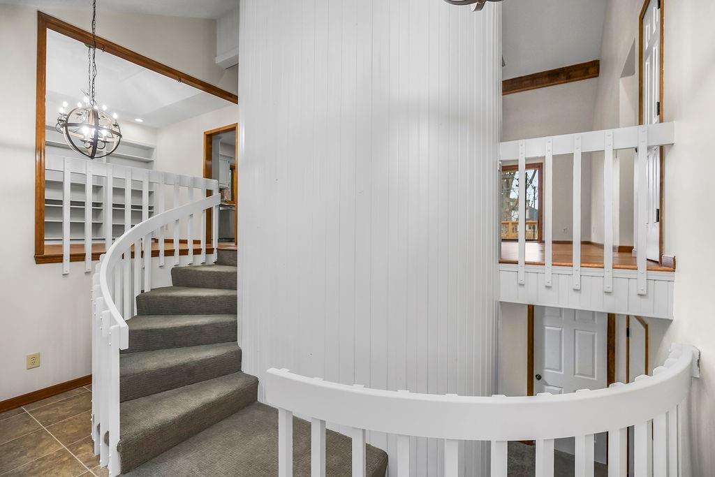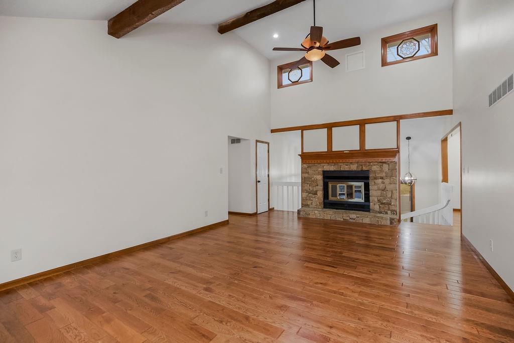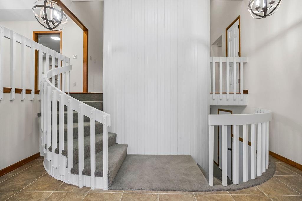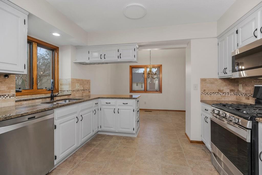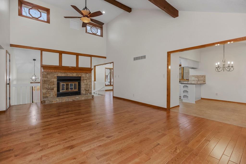 Move-in ready Great Atrium split home, available for a quick close! Virtually staged photos showcase just how cozy and charming this home can be. A welcoming entry features a dramatic accent wall—perfect for displaying artwork—along with new lighting and new carpet on the entry stairs. The vaulted great room is filled with character, offering a beautiful stone fireplace and stained-glass windows. The eat-in kitchen has been freshly painted and updated with new hardware and a new faucet; all stainless steel appliances stay. The breakfast area includes an eat-up bar and space for a dining table, ideal for everyday meals. Sliding glass doors lead to the deck, which connects to the above-ground pool—creating a fun and functional outdoor space for family time and summer entertainingFor holidays and more formal occasions, enjoy the dining room with wall-to-wall bookshelves, a tray ceiling, and attractive wood flooring. The updated primary suite features a new double vanity, striking tile, updated fixtures, a glass shower door, and a walk-in closet. Two additional bedrooms, a hall bath, and conveniently located main-level laundry complete the main floor. The basement offers a fourth bedroom—perfect for an older child—or flexible space for an office, movie room, or workout area. The oversized 25x30 garage provides ample storage and workspace. Situated on over a quarter acre, the yard includes a privacy fence, above-ground pool, and a greenhouse with electricity. Virtually staged photos have been provided to highlight how cozy and charming this home can feel. Note: Listing agent is related to seller.