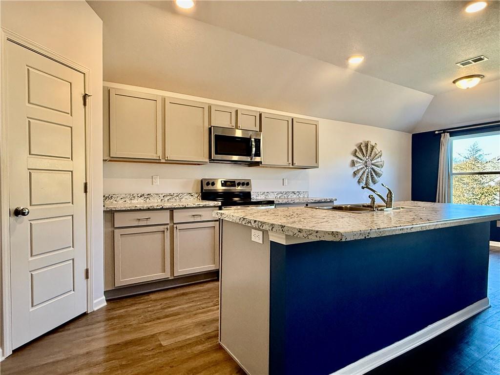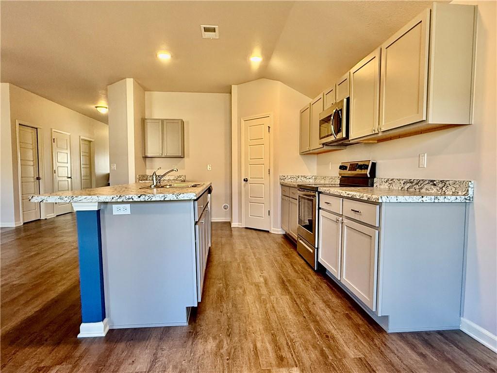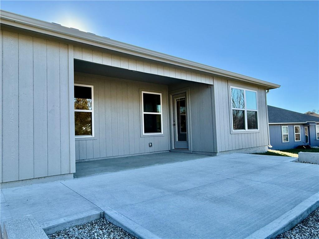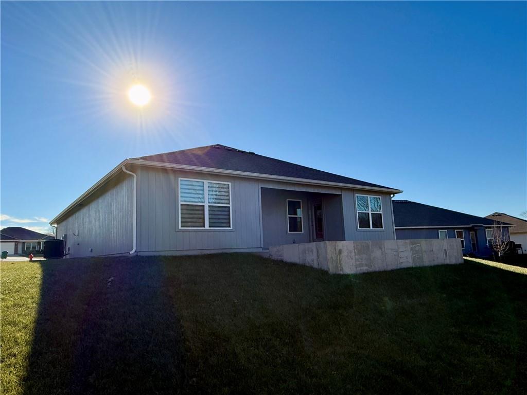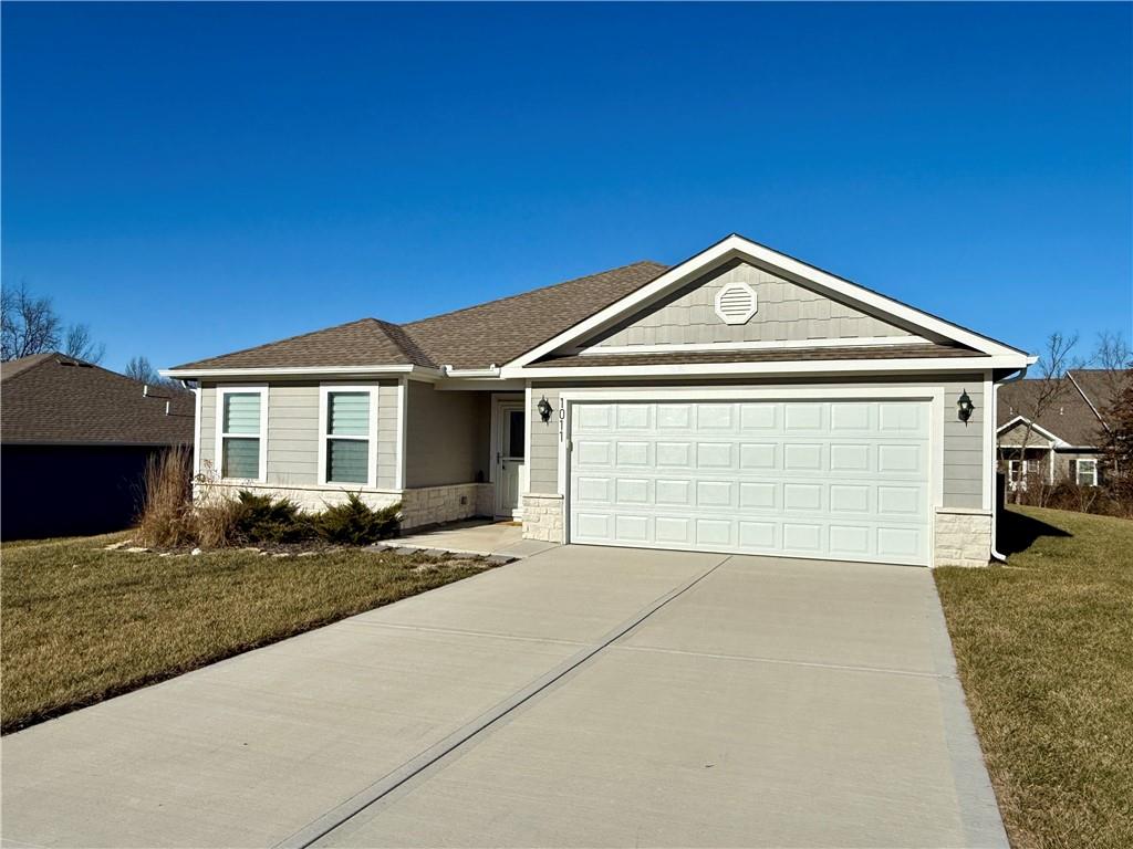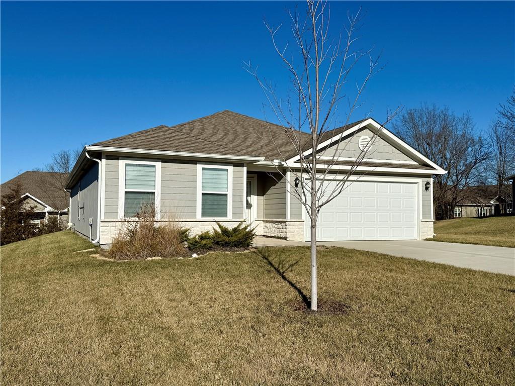 Enjoy comfortable one-level living in this inviting 3-bedroom, 2-bath ranch home located in a desirable area of Paola—just minutes from downtown, schools, and everyday conveniences. Built just two years ago, this lightly lived-in home features an open, airy floor plan filled with natural light. The kitchen is thoughtfully designed with a large island, ample counter space, and a walk-in pantry, making it ideal for both daily living and entertaining. The spacious owner’s suite offers a generous walk-in closet and a bathroom with room to add a future vanity or soaking tub. Outside, unwind on the covered back porch or expanded patio while enjoying tranquil views of the green space and the wildlife it attracts.