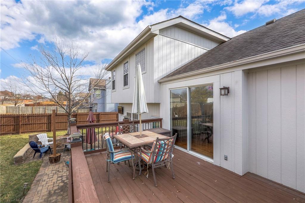 Everything you have been looking for in Lee's Summit! Come through the front entry way and find a hearth room. Just beyond is the kitchen with hardwood floors, newer kitchen appliances, breakfast bar, and walk in pantry. Fantastic backyard with privacy fence, deck, and paver stone patio. Family room with fireplace and plenty of natural light. Finished lower level provides additional living space. Upstairs you will find three bedrooms and two full bathrooms and second floor laundry! Primary suite with large glass shower, walk in closet and double vanity. Secondary bedrooms share an additional bathroom and each have generous closets. 3 car garage perfect for all of your toys! Close to great schools, highway and shopping.