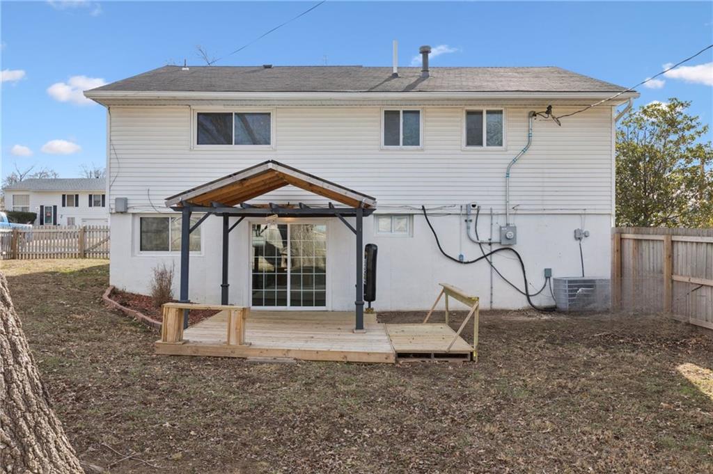 Check out this Split Level home where the space is maximized in every way! This charming 4-bedroom, 2.5-bathroom home in Liberty, MO, is situated on a spacious corner lot featuring a signature Magnolia tree and a full privacy fence. Property Highlights include: Rare configuration with all 4 bedrooms located on the same level. Hardwoods are featured throughout the Bedroom Level, which also has a large Primary Bedroom with an attached full bath, as well as a full bath dedicated to the other three bedrooms. Dual Living Spaces: A large living room on the upper level and a cozy lower-level family room adjacent to the kitchen. Recent Upgrades: Features newly painted kitchen cabinets, updated bathrooms, and fresh interior paint. Outdoor Living: Walk out from the lower level patio doors and step onto your covered patio and a large, flat yard with a privacy fence. Bonus Inclusions: The stackable washer/dryer, refrigerator and dishwasher stay with the property. Location & Lifestyle: The home is near to fabulous local shopping destinations with something for everyone, plus grocery stores and many restaurants to choose from. Located minutes from Liberty High School, this short commute helps make the weekday mornings less stressful! Access to every major Highway in Liberty and the Northland, this property is situated in the ideal location to get to downtown KC, or to the Airport easily.