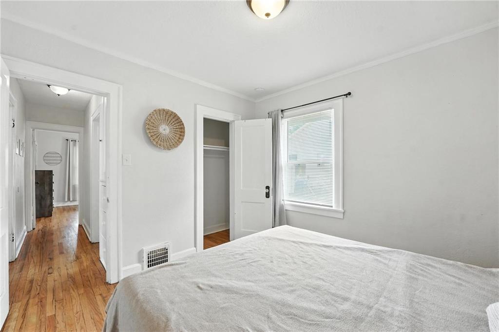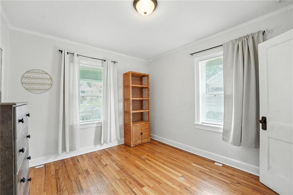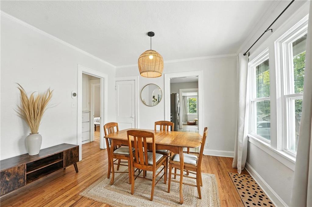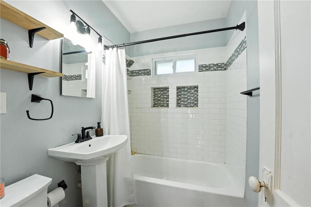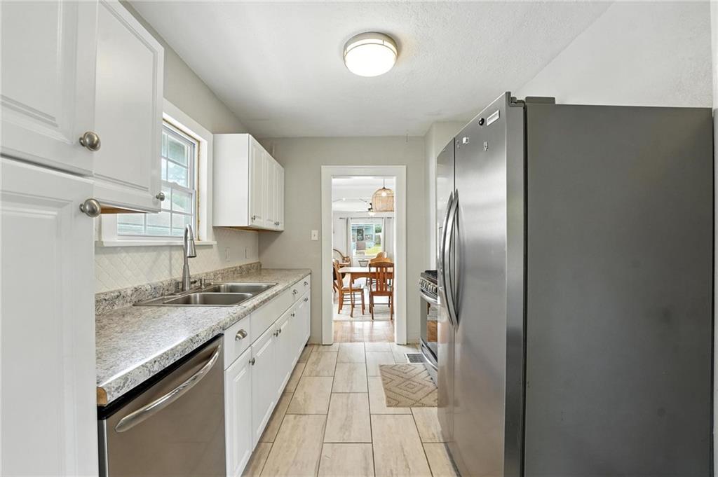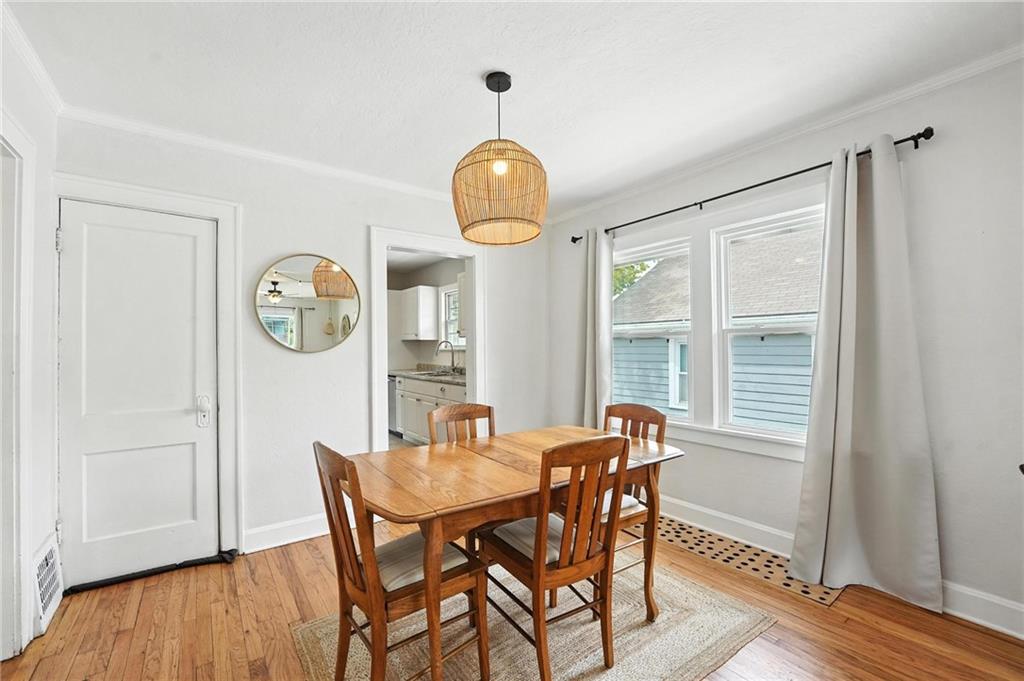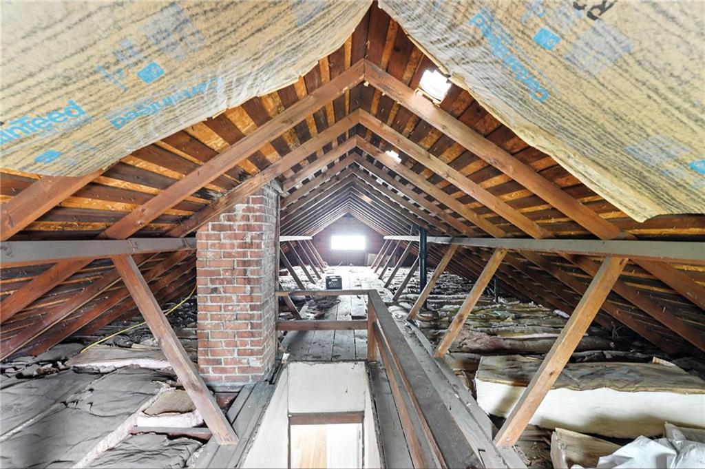 Charming bungalow with the white picket fence everyone dreams about. Major updates completed in 2022 include new windows, AC, water heater, gutters, and beautifully refinished hardwood floors. Rare large off street parking adds everyday convenience. The welcoming covered front porch sets the tone, leading into a light-filled living room with hardwood floors, a brick fireplace, ceiling fan, and a large picture window. The dining room features refinished hardwoods and an arched opening that flows seamlessly into the updated kitchen with tile flooring, laminate counters, and newer stainless steel appliances including a gas stove. A recently finished sunroom with new windows and an exterior door provides additional living space ideal for relaxing or entertaining. Both bedrooms feature hardwood floors, and the full bath offers a tiled shower surround. The stone basement includes storage and a garage door. Outside, enjoy a side deck, shared driveway, and rear parking. The attic includes stairs and windows, offering excellent potential for future living space.