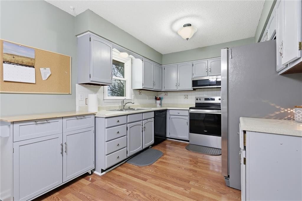 Super cute and stylishly updated home on a large lot in a quiet cul-de-sac with a BRAND NEW ROOF - what more could you ask for? The bright, open family room is complete with a shiplap accent wall and flows easily into the adjacent dining area and kitchen. From the darling kitchen with stylish gray cabinets and stainless steel appliances, you have a great view of the back deck and large, fenced yard. On the other side of the main level, a nicely sized primary suite with private full bath and two additional bedrooms and second full bath provide the perfect amount of space for family or guests. Downstairs, the finished walkout basement features a spacious living room with a beautiful floor-to-ceiling brick fireplace, a conveniently located half bath, and a lovely laundry room. Perfectly located close to lakes, parks, shopping and dining, and highway access. Welcome home!