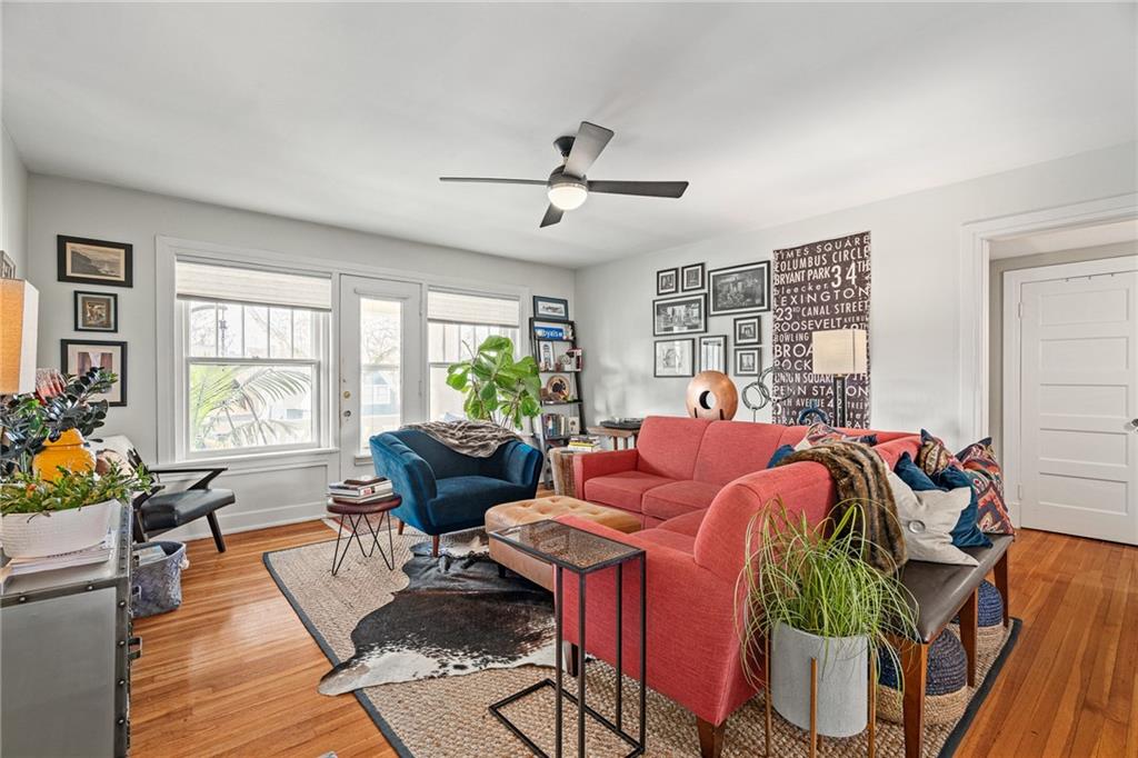 Welcome home to this charming 2-bedroom, 1-bath condo nestled in the heart of Southmoreland. Located within a gated community this home offers both privacy and convenience, complete with a rare 1-car detached garage, plus access to a community garage for dedicated bike storage. This second story walk-up unit provides both comfort and functionality. Original functioning windows add timeless character, while custom top down/bottom up blinds in all but one room provide flexible light control and privacy. The versatile bonus room located off the back porch provides the perfect space for extra storage(in addition to the basement), an office, or a creative studio-whatever suits your lifestyle. Step outside to your covered balcony, an ideal spot to enjoy morning coffee, or unwind in the evening. Enjoy unbeatable walkability with a streetcar stop just 4 blocks away. You're also within walking distance to the Nelson-Atkins Museum of Art, Kemper Museum of Modern Art, KC Art Institute, the Plaza, and Westport-placing culture, dining, shopping, and entertainment right at your doorstep. This condo offers the perfect blend of charm, location, and low-maintenance living in one of KC's most vibrant neighborhoods.