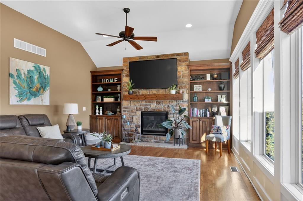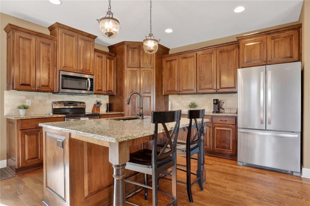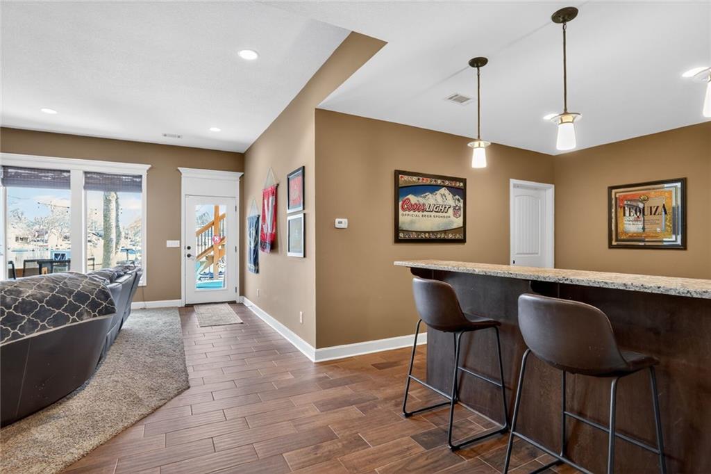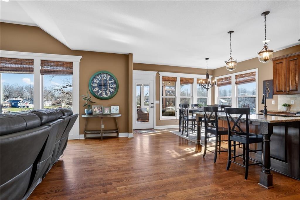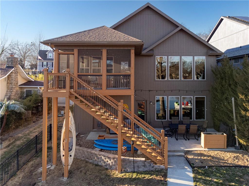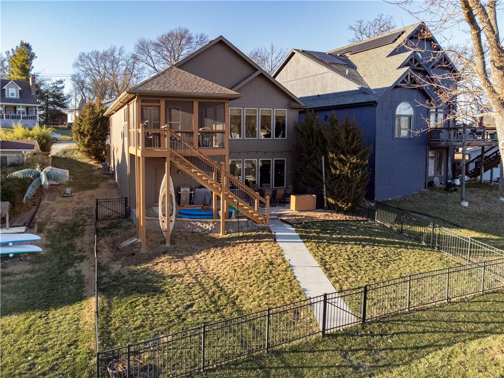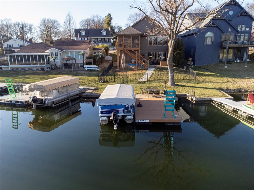 COMING SOON! Live in MLS 1/22/2026 RARE FIND at Lake Tapawingo! Custom Built in 2015, this tastefully designed REVERSE RANCH with THREE CAR GARAGE is MOVE IN READY! The Spacious Entry welcomes you home and leads to the the most spectacular views of the Lake so you will never miss a sunrise or sunset. Main level has beautiful hardwood floors. Great Room with easy start Stone Fireplace has Bookcases on either side and floor to ceiling windows. You'll love the well equipped Kitchen with warm wood cabinetry, granite countertops, island and HUGE WALK-IN PANTRY. Dining area opens to a screened porch that overlooks the wide peaceful cove. Primary Suite with vaulted ceiling has spacious bathroom with walk-in shower, double vanities and walk-in closet. Uniques features on the main level include access to laundry from primary suite closet and hallway and a convenient built in desk with cabinets. A Half Bath for guests completes the main level. The Lower Level has two spacious bedrooms, full bathroom, wet bar, rec room, storage area and an Super Bonus Room with lake side access for storing your lake toys or lawn furniture, and there's a doggie door too! Fenced yard and premium outdoor entertainment area with patio, dock and amazing views of the Lake. Three car garage with bays that will accommodate a large pickup truck. There's always something to do at the Lake! Fishing, Boating, Swimming, Pickleball, Tennis, Walking Trails, Women's Club, Sportsman's Club and many community events through the year.