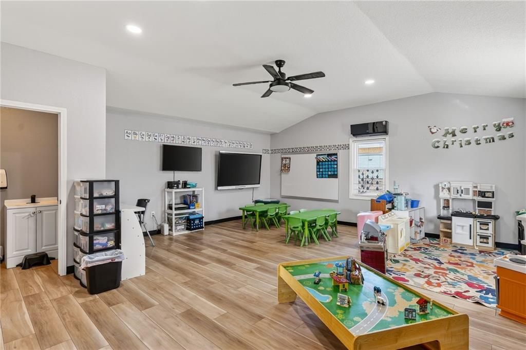 This beautifully newly remodeled daycare facility is designed to provide a safe, engaging, and nurturing environment for children. The property features a welcoming common area, three spacious and thoughtfully designed classrooms, four well-appointed bathrooms, and a dedicated administrative office to support daily operations. Additional amenities include a fully equipped kitchen, pantry, laundry room, ample storage throughout, two fireplaces, and an unfinished basement offering the potential to add additional classrooms or storage space. The facility also includes a spacious two-car garage and a vending machine for added convenience. For enhanced safety and peace of mind, the building is equipped with a security system and an interior sprinkler system. A secure outdoor playground provides ample space for active play and developmental activities. Throughout the facility, modern upgrades and child-friendly finishes create a warm and welcoming atmosphere for both families and staff. This turnkey daycare presents an excellent opportunity for operators seeking a clean, functional, and well-equipped space to support a growing childcare program.