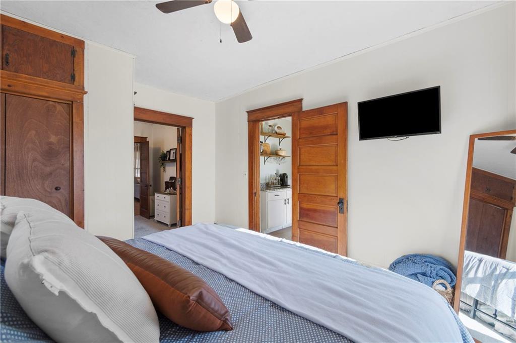 Timeless character meets modern comfort in this beautifully preserved 1923 Craftsman bungalow, rich with the charm and integrity that define homes of this period. From the moment you step inside, you’ll appreciate the stunning original woodwork, including crown molding, built-ins, classic colonnades, heavy five-panel wood doors, and a charming window seat in the formal dining room. Gorgeous wood floors flow throughout the main living spaces, adding warmth and authenticity. The main floor offers two bedrooms, one full bathroom, a formal dining room, and a functional mudroom with laundry. The updated kitchen provides modern convenience while remaining in harmony with the home’s historic character. Upstairs, you’ll find a third bedroom and a full bathroom, creating a versatile space that would make a wonderful primary suite, private retreat, or bonus room. The enclosed front porch is filled with natural light from sunny windows on all sides, making it an ideal sunroom, plant room, or additional living space. Outdoor living continues with a new rear deck, perfect for relaxing or entertaining. A detached two-car garage and carport provide ample parking and storage. A new roof installed in 2023 adds peace of mind. This special home is a rare opportunity to own a true Craftsman bungalow where original details have been lovingly maintained while modern updates enhance everyday living.