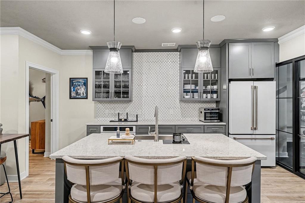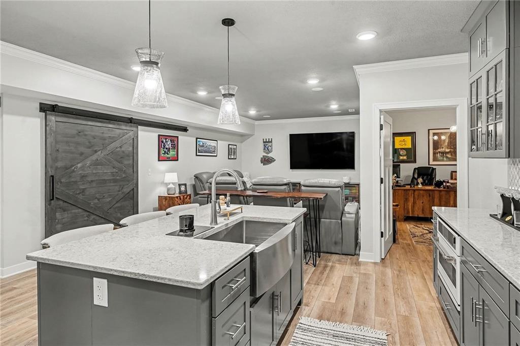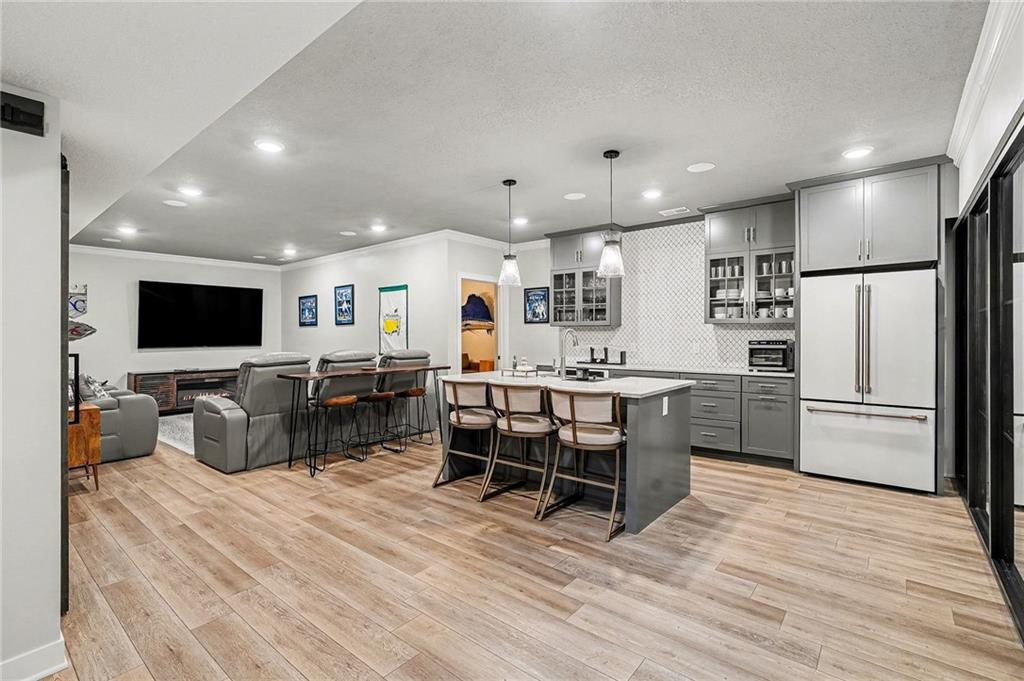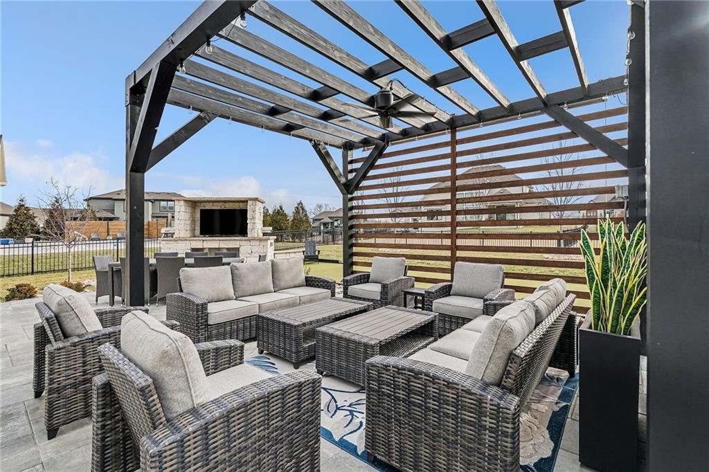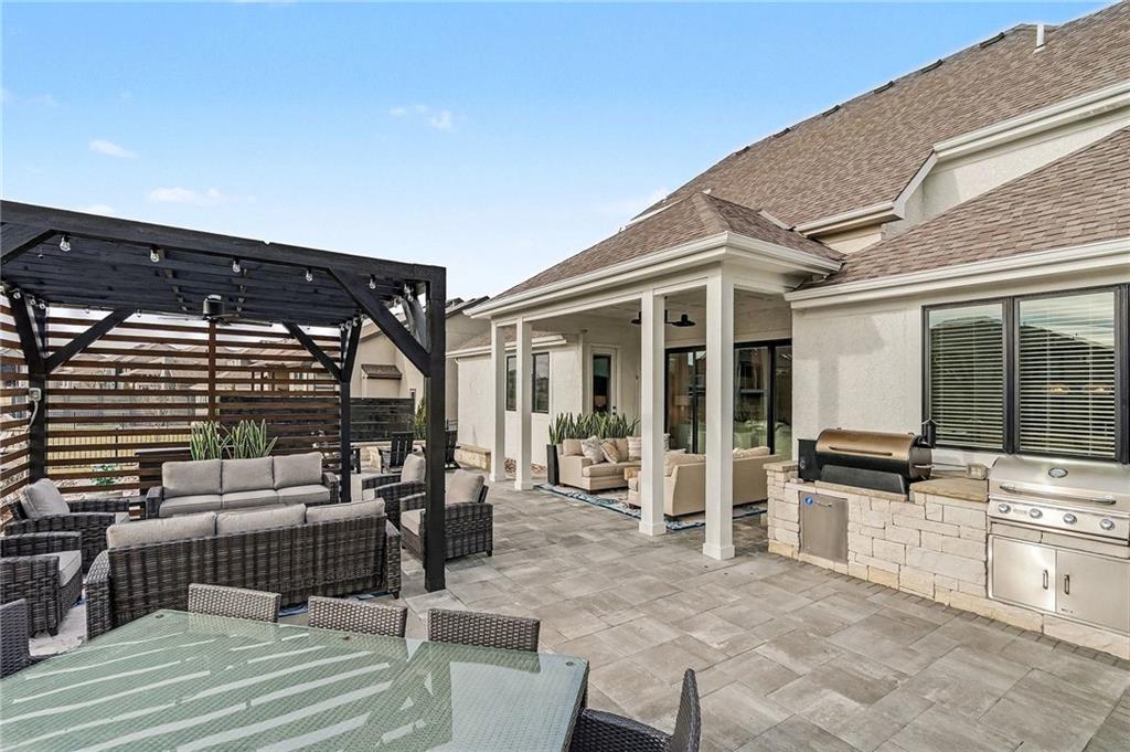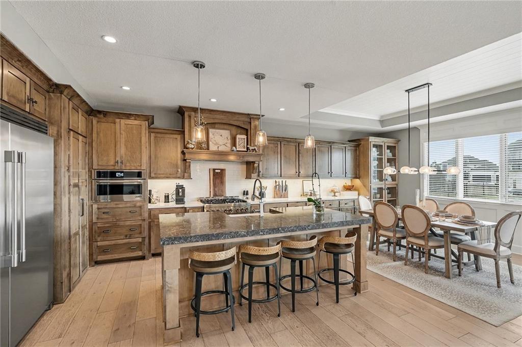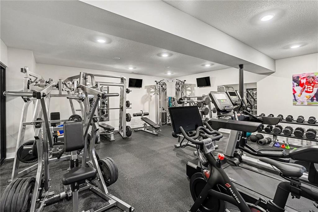Built by Homes by Chris, this extraordinary 1.5-story home is a blend of timeless elegance, thoughtful design & high-end finishes. From the moment you arrive, elevated lighting, materials & hardware set the tone for refined living. The open-concept main level includes a gourmet kitchen with a large walk-in pantry and a double refrigerator/freezer. The living room features a fireplace & sliding doors connecting the interior to the outdoor living spaces. The elegant primary suite on the main floor offers a serene retreat with a spa-inspired bathroom. A 2nd main-level bedroom provides flexibility for an office or guests. A half bath & mud room complete the main floor. Upstairs, you’ll find 3 bedrooms, each with an ensuite bath & walk-in closet. This level also includes a laundry room & loft that can be closed off for added privacy. The finished basement (2022) is truly next level—featuring a large commercial-grade gym & an infrared sauna, all behind a glass wall. Add'l highlights include a kitchenette with built-in ice maker, full-size refrigerator, microwave & disposal; a rec room with theater seating; a flex space for a non-conforming bedroom or home office; & a full bath. Step outside to your private backyard oasis—includes a covered patio, pergola with add'l seating, fireplace, fire pit area & built-in gas grill & Traeger smoker. A bocce court, trees and privacy walls create a secluded, resort-like atmosphere. As a resident of Staley Farms, you’ll enjoy premier amenities including a fitness center, indoor basketball/pickleball court, swimming pool, outdoor tennis & pickleball courts, sand volleyball, walking trails & the option to join the award-winning Staley Farms 18-hole golf course. The home is located within the highly regarded Staley High School boundaries and just 15 minutes from downtown, KCI, Liberty or Zona Rosa. Don’t miss the opportunity to experience Staley Farms living—schedule your private showing today and make this stunning home your own.