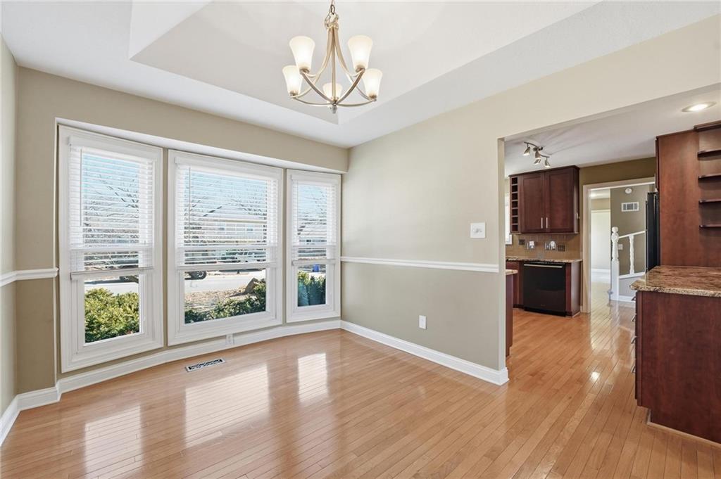 This home offers 4 bedrooms with a desirable layout featuring a primary suite and second bedroom on the main level, plus an additional generously sized primary-style bedroom upstairs. With 2 full baths and 1 half bath, there's plenty of space for comfortable living. The updated kitchen is perfect for everyday living and entertaining with easy pull out shelves and soft close drawers. Two fireplaces - located in the family room and finished basement. The finished basement provides extra living or recreational space. Step outside to an oversized deck overlooking a fenced-in backyard, extra large patio with basketball goal with electric automatic gate. Ideal for relaxing or entertaining. Conveniently located near parks, schools, and shopping, with easy access to major highways.
