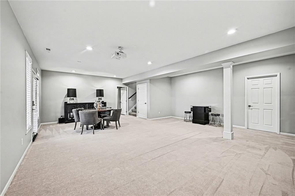 Stunningly remodeled Ranch/Reverse spans over 3,700 sqft. with designer finishes and showcases a bright, open layout highlighted by 11' ceilings and expansive floor-to-ceiling windows with plantation shutters framing a serene neighborhood pond. The main level features the Primary bedroom and a large second bedroom. The Primary suite has a custom closet system with built-in drawers and shelving. The chef's kitchen has a 7' island for dining or entertaining, new cabinets, marble countertops and high-end appliances and a large pantry. Just off the entry you can go through double doors to the home office or formal dining room with custom built-ins. Newly refinished hardwood floors throughout the main level, designer lighting, updated tile fireplaces and fresh interior/exterior paint complete the main living areas. The fully finished lower level includes two additional bedrooms with double closets, a full bath, a spacious family/theater room, two generous storage rooms, and a dedicated room ideal as a home gym, craft space or man cave and includes double exterior doors to the backyard. Outdoors is an entertainer’s dream with a beautifully landscaped yard with concrete decorative edging, sprinkler system, new concrete sidewalk to front entry, large deck with pergola and a covered patio overlooking the stocked pond and views of gorgeous sunsets. The oversized three-car garage features epoxy floors and an extra-deep bay for your truck or SUV. Located in a friendly community within the award-winning Piper school district and just minutes from The Legends Shopping area, close major highways, and only 20 minutes the airport and downtown. This home has been meticulously finished and maintained and has all of the extras you won't find in new construction.