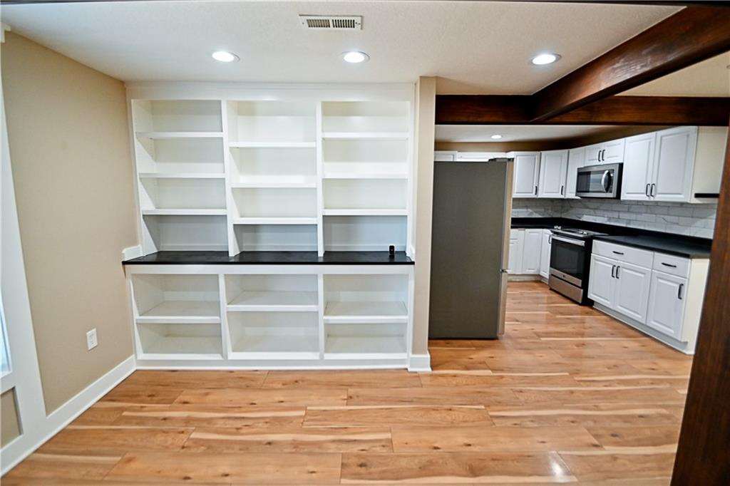 Welcome to your BEAUTIFULLY updated home! Step into a warm and inviting space highlighted by a built-in smart electric fireplace. With this open floor plan, you can easily get to the kitchen which boasts all newer appliances including a see-through fridge/freezer combo, stove, oven, and microwave as well as a SPACIOUS walk-in pantry. The updated counter tops, cabinets, and back splash add even more stunning touches. It provides ample storage for all your culinary needs. The updates continue throughout the entire home as you walk through the 3 bedrooms and spacious bathroom. You'll find hardwood floors in immaculate condition, and neutral paint making this home ready to move into with the lovely bonus of keeping the washer and dryer if you'd like. Even more so, walk outside and enjoy nearly half an acre of fenced-in space! This yard is perfect for entertaining, pets, gardening, a fire pit, numerous outdoor activities, or just enjoying the fresh air. This home is a prime location, minutes from shopping/entertainment/and tons of great food at Tanger Kansas City at Legends (formerly called Legends Outlets). ***If this gem being move-in ready wasn't enough, THE TAXES FOR 2026 ALREADY PAID really drive the point home!*** Don't miss your chance to make it yours. Schedule a showing today! Please send e-mail all offers to: rbraggs@weichertgenerations.com