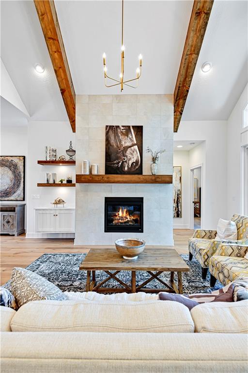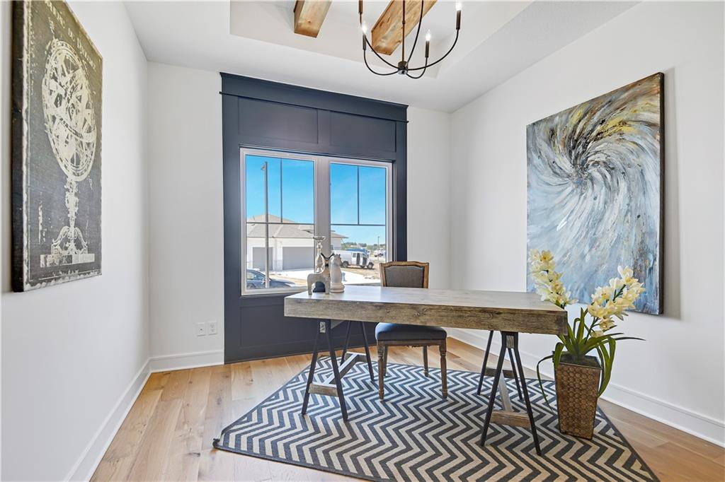 Experience refined luxury in The Bayberry by JFE Construction, a stunning villa designed for elevated everyday living. An impressive 8-foot double front door opens to soaring ceilings, dramatic wood beams, and expansive walls of windows that flood the great room with natural light. Oversized sliding doors lead to a covered deck with a stone fireplace, perfectly positioned to overlook tranquil greenspace—ideal for both relaxing evenings and effortless entertaining. The designer kitchen is as functional as it is beautiful, featuring a large quartz island, stainless steel appliances, rich wood flooring, and an oversized walk-in butler’s pantry. The primary suite offers a private retreat with a freestanding soaking tub, double vanity, zero-entry shower, and a spacious walk-in closet. A second main-level bedroom or office provides flexible living options. The finished lower level expands the home’s versatility with a family room, bar area, game space, two additional bedrooms, and a full bath—perfect for hosting guests. Throughout the home, exquisite trim work, wood accent walls, bold black accents, and thoughtful architectural details elevate every space. Located in Canyon Creek Forest, a luxury maintenance-provided, free-standing villa community, this home offers a carefree lifestyle with lawn care and snow removal included—while enjoying all that Lenexa has to offer. Estimated completion is June 2026, with time remaining to make select design choices and personalize this exceptional home. Photos are of a former model and may include upgrades not included in the price. Don't miss out on this one. It is going to be a stunner!!