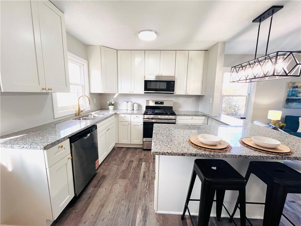 Completely remodeled ranch home with so much NEW! Welcome home to one level living with NEW kitchen with white cabinets, granite countertops, undermount sink, stainless appliances (dishwasher, gas 5 burner stove, microwave) and open to the living room. New luxury low maintenance vinyl plank flooring throughout, fresh paint, new solid wood doors with black hardware, new heating and central air conditioning system, brand new gorgeous bathroom with oversized tile shower and extra storage. Deep closets in the bedrooms with organizing systems and convenient laundry near bedrooms. Large nearly 1/4 acre privacy fenced yard with dry shed in quiet neighborhood near shops, schools and parks.