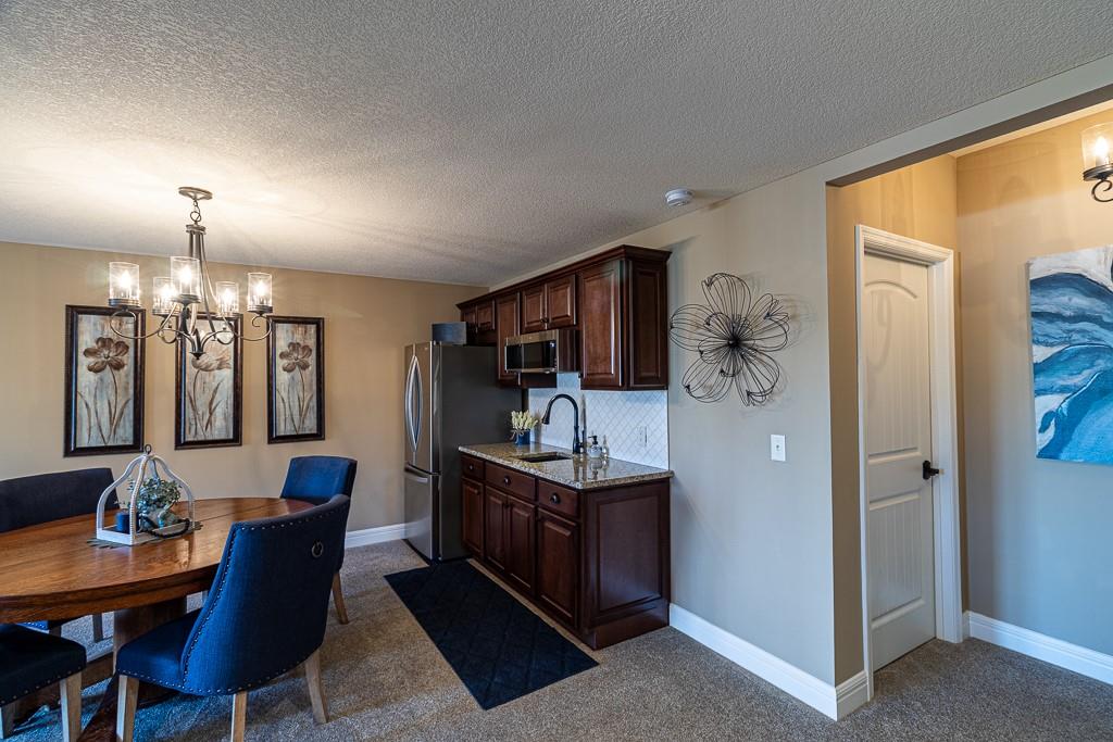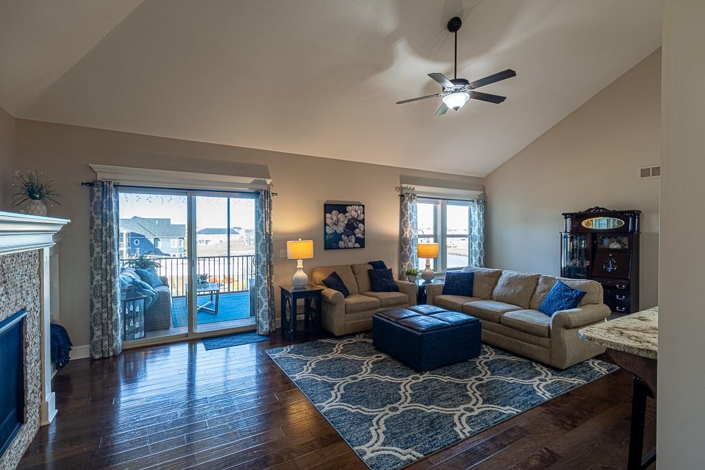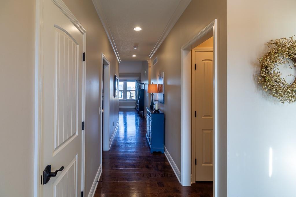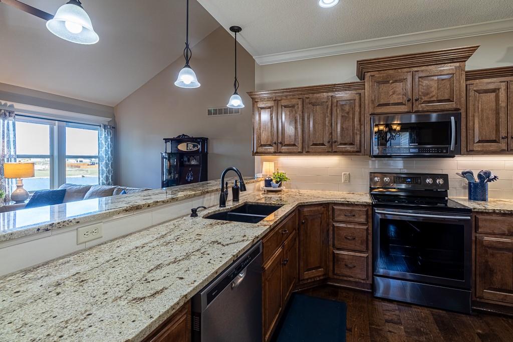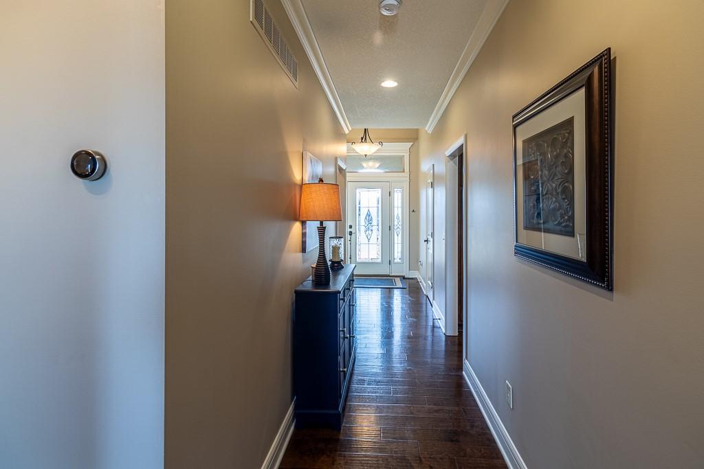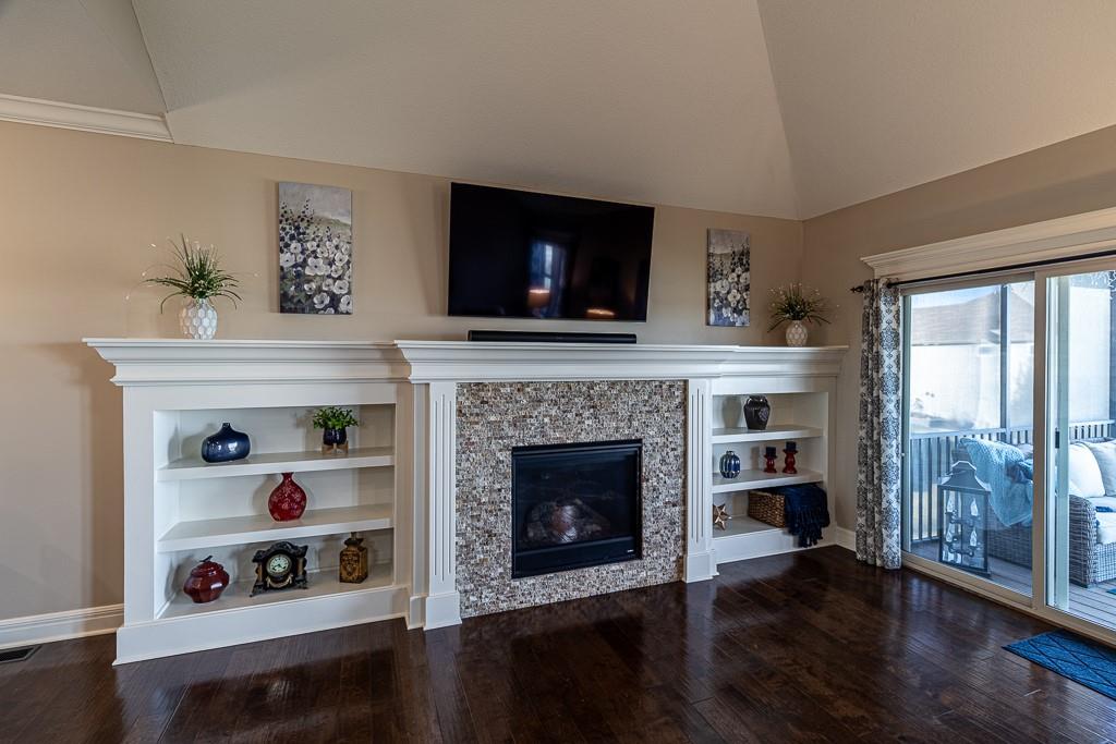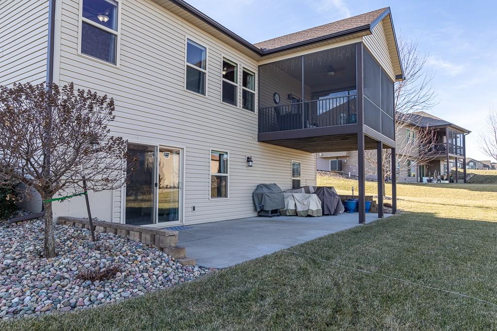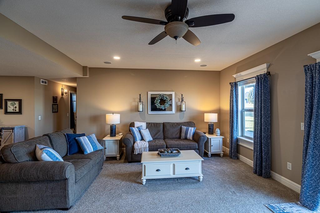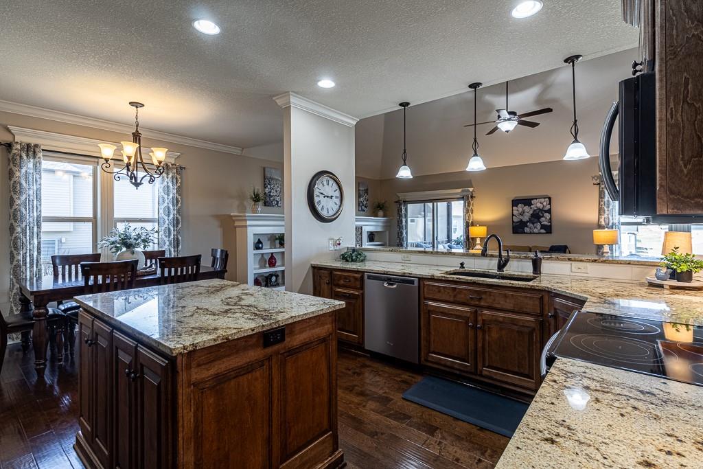Attention Greystone Buyers!! This immaculate 4 bedroom reverse 1 1/2 story has it all! Beautifully maintained, custom built one owner home features warm wood flooring, upgraded kitchen with large island, stained cabinetry with roll out shelving, deep drawers, pantry and stainless appliances, including refrigerator. The open floor plan is ideal for entertaining or everyday living. The spacious great room is highlighted by an attractive gas fireplace and built-in book cases, tall ceiling and access to the screened deck. Be sure to check out the view of the association pond and common grounds from the deck and patio. The primary suite includes a large bedroom plus walk-in closet, double vanity and attractive tiled shower. Also conveniently located on the main level is the 2nd bedroom, laundry room (washer & dryer stay) and a 3 car attached garage. The tastefully finished lower level boasts a well lighted family room that includes a kitchenette, 2 additional bedrooms, 3/4 bath and storage room. Easy access to the expanded patio from the family room for additional enjoyment. Additional improvements & upgrades: Garage floor & front stoop epoxy finish, humidifier on the furnace, lawn irrigation system, water softener, garage cabinets added, professional landscaping. Better check this one out before it's sold! (portable shelving in storage room, slat tool racks & refrigerator in garage do not stay)
