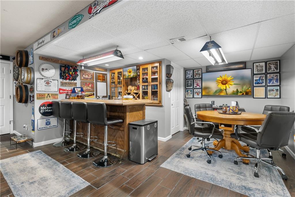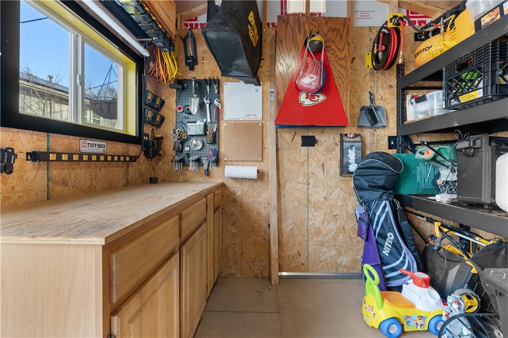 Welcome home to this very well loved and maintained home close to red bridge shops and south KC. It’s the entertainers dream featuring one of the best back lots around. Large deck, stamped concrete and tiered stone with outdoor lighting and workshop shed. Great floor plan inside with updated kitchen, fresh paint, tons of wood character and large primary suite. Downstairs is stocked with a custom built in bar, perfect for theatre and second living room options and stubbed and ready for a third full bathroom and workout room. Garage has an additional work shop built in.