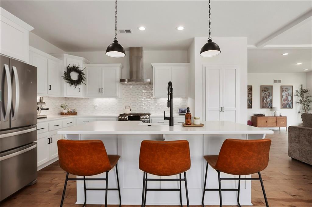 This Modern Farmhouse Was Built to Be Lived In—Not Just Looked At. This three-year-old modern farmhouse proves that great design should work as beautifully as it looks. From the moment you step inside, the open floor plan and abundant natural light do what good architecture always does: they make you feel at home. The kitchen is the command center—generous prep space, two pantries, and a layout that supports real cooking, real entertaining, and real life. Nearby, a thoughtfully designed drop zone keeps daily chaos organized without effort. Upstairs, the primary suite offers the kind of privacy and comfort most people don’t realize they want until they have it: an oversized walk-in closet, a deep soaker tub, and a spacious walk-in shower designed for unhurried mornings. Three additional large bedrooms provide flexibility for family, guests, or work-from-home needs, while the upstairs laundry is exactly where it should be—close, convenient, and practical. The lower level extends the home’s usefulness with a fifth bedroom suite or private office and a custom media room that turns ordinary evenings into something worth staying in for. Outside, the home continues to deliver: a covered deck for year-round enjoyment, irrigation system, play gym, and a new PVC privacy fence that offers both security and peace of mind. This is not a house designed to impress for five minutes. It’s a home designed to satisfy for years.