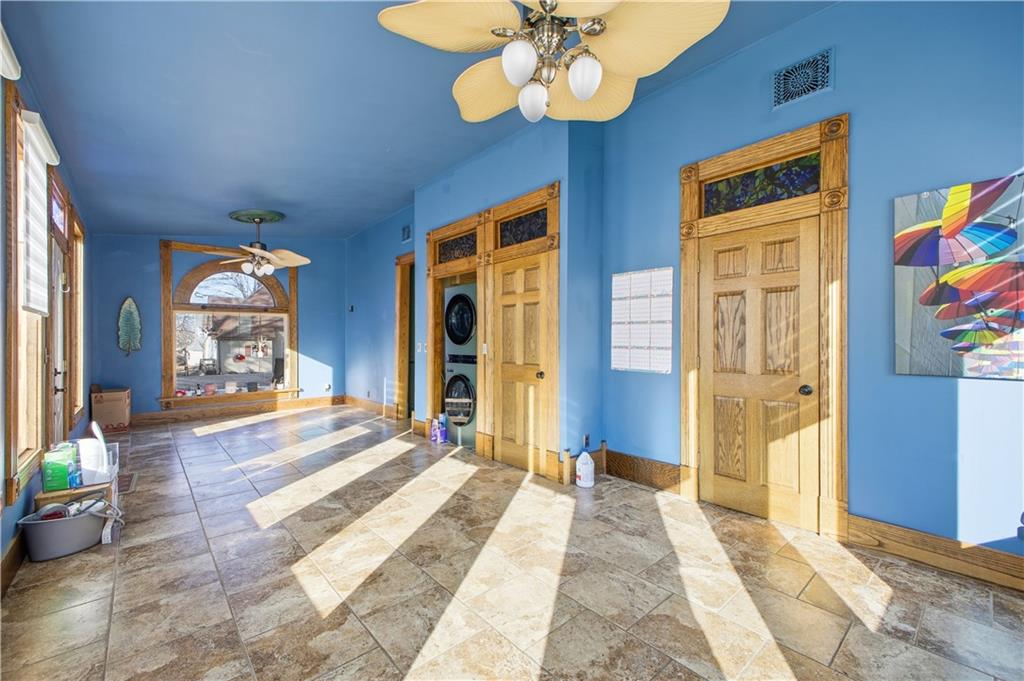 As you approach the property, the first glimpse of this beautiful home instantly draws you in with its timeless charm and inviting wraparound porch. Completely redone down to the studs, this home blends historic character with modern updates. It offers beautiful painted ceilings, ornate lighting, and crown molding. Step inside and you’re welcomed by a stunning sunroom filled with natural light—it truly takes your breath away and sets the tone for the rest of the home. The beautiful staircase immediately catches your eye, while the spacious living and dining rooms feel warm and cozy thanks to the fireplace and rich hardwood floors that perfectly complement the space. The kitchen is truly a cook’s dream, featuring quartz countertops, custom-built maple cabinets, and beautiful tile flooring. Just behind elegant French doors is the main-floor bedroom, showcasing even more of the thoughtful details throughout the home. A full bathroom is conveniently located just off the sunroom. Upstairs, you’ll find a cozy sitting area with its own fireplace—perfect for relaxing. This level also includes three bedrooms with one currently serving as a walk-in closet. A full bathroom completes this level, featuring double vanities, a jetted tub, and a separate shower. Each room is just as lovely as the next. Outside, the property continues to impress with a large 55’ x 40’ shop featuring concrete floors, water, sewer, 220 electric, two built-in rooms, one 14-foot door, and two 8-foot doors. The yard is enclosed with a privacy fence. The roof was replaced approximately five years ago. Situated on 1 acre (mol) in a convenient location close to Saint Joseph, Maryville, and Savannah. This home truly has it all—beauty, character, and history. You won’t want to miss this one. Schedule your showing before it’s gone!
