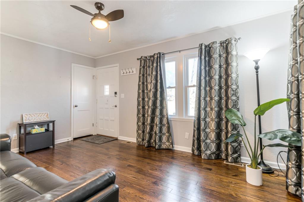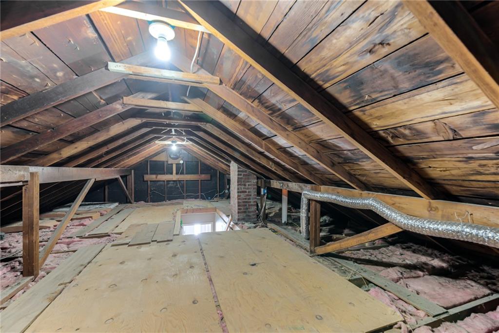 Charming Brick Home with Main-Level Living & Expansion Potential. This adorable two-bedroom brick home is full of character and has been meticulously maintained and thoughtfully updated throughout. The main-level living area offers warm wood floors that extend through the living spaces and bedrooms, creating a cozy and inviting atmosphere. The home features newer vinyl windows, along with a newer roof and gutters, providing peace of mind for years to come. The main bathroom is finished with tile flooring and a large porcelain tub. The updated kitchen boasts granite countertops and a convenient eat-in area, perfect for everyday meals or entertaining. An unfinished attic offers excellent potential for future expansion and additional living space. The basement includes a finished office or recreation room, a dedicated laundry area, and access to a full-car garage, & newer driveway Outside, large deck overlooks the huge backyard provides endless possibilities—ideal for a beautiful garden, outdoor entertaining, or the addition of a detached storage or garage space. This charming home is move-in ready with room to grow and is a must see!
