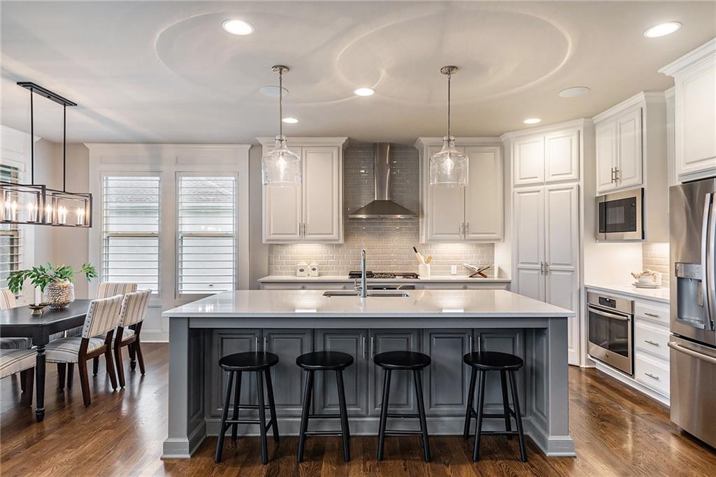 Experience luxury living in WatersEdge, one of Overland Park’s premier communities known for its serene waterscapes, resort-style pool, and clubhouse — all located within the award-winning Blue Valley School District. This stunning Bailey two-story by Roeser Homes offers approximately 3,300 square feet of thoughtfully designed space, featuring four bedrooms and three and a half bathrooms. A pair of elegant double front doors welcome you into a warm and inviting interior that includes a formal dining room, a home office with custom built-ins, and rich hardwood floors throughout the main level. The soaring two-story hearth room showcases a dramatic stone fireplace, while a separate great room offers an additional fireplace, creating multiple cozy gathering spaces. The gourmet kitchen is beautifully appointed with stainless steel appliances, double ovens, a center island, and a custom bar complete with a wine cooler and wine rack. Upstairs, a split staircase leads to the luxurious primary suite, which includes a private sitting area with fireplace, a spa-like bathroom with an oversized shower, jetted tub, and dual vanities, and an expansive walk-in closet with convenient access to the laundry room. Three secondary bedrooms offer spacious walk-in closets, vaulted ceilings and one has an ensuite bath while the other two share a Jack and Jill bath. Outdoor living is just as impressive featuring a covered patio with a fireplace—perfect for entertaining or quiet evenings at home. Additional features include additional outlets built-in ProSlat wall hanging system in the three car oversized garage, an unfinished basement stubbed for a bath and a wet bar, and a mirrored wall for a workout space. Enjoy new fresh interior paint and numerous high-end upgrades including extensive elegant millwork around all windows, a Sonos audio system with ceiling speakers, plantation shutters, a security system and a sprinkler system. This home is a true reflection of pride in ownership.