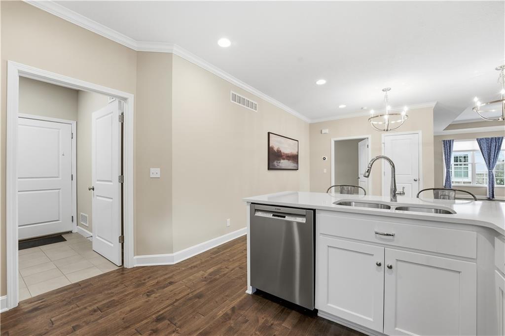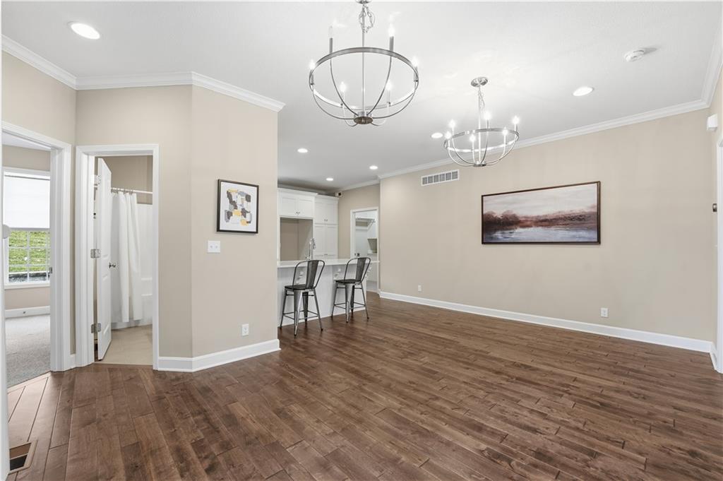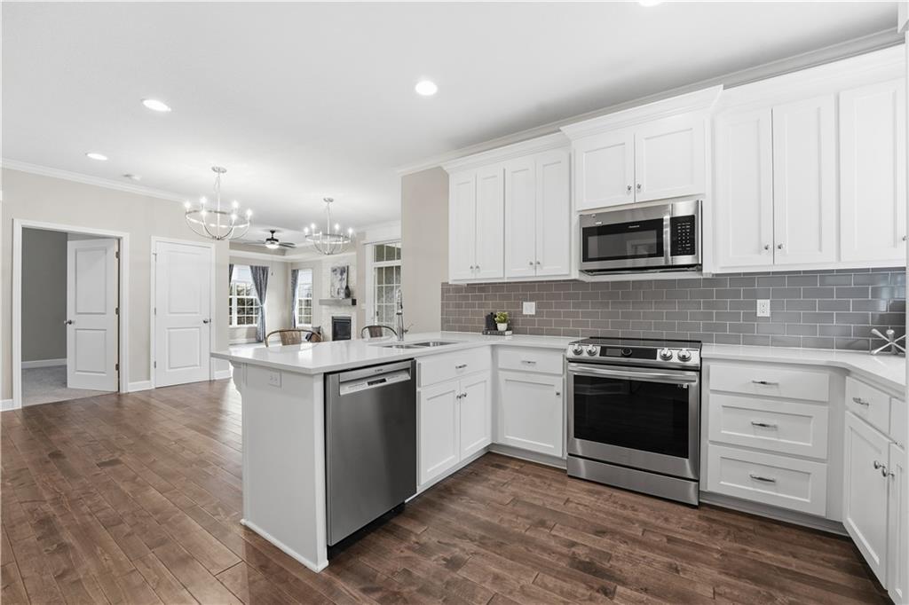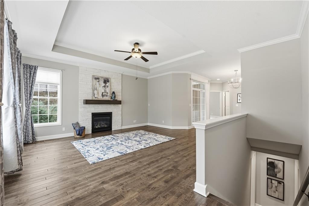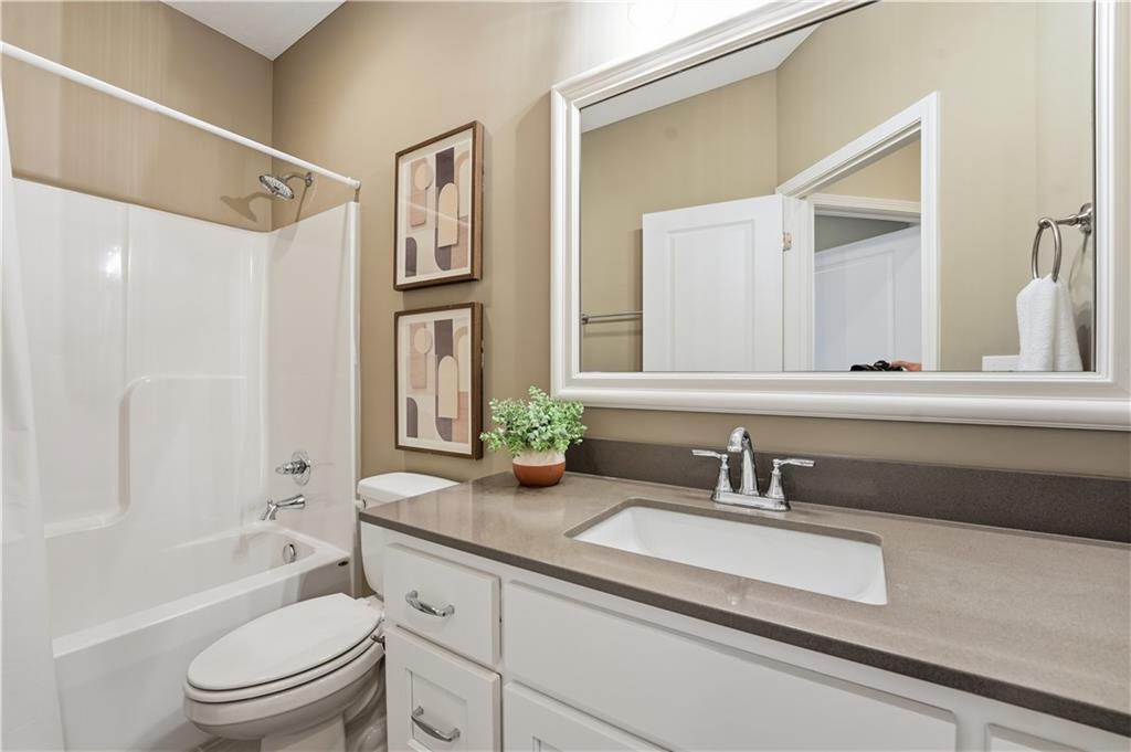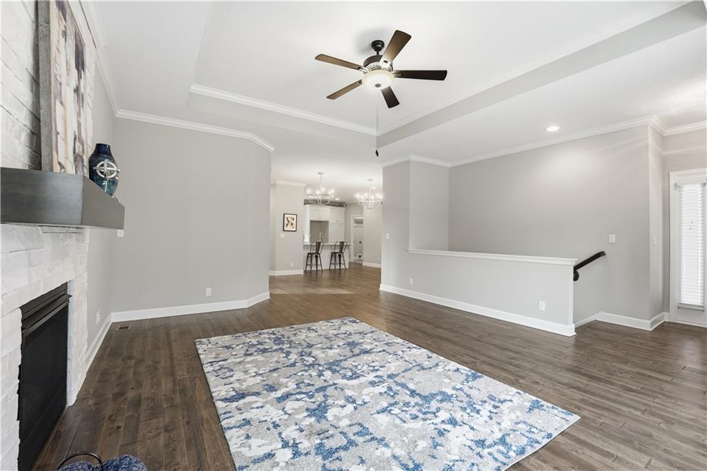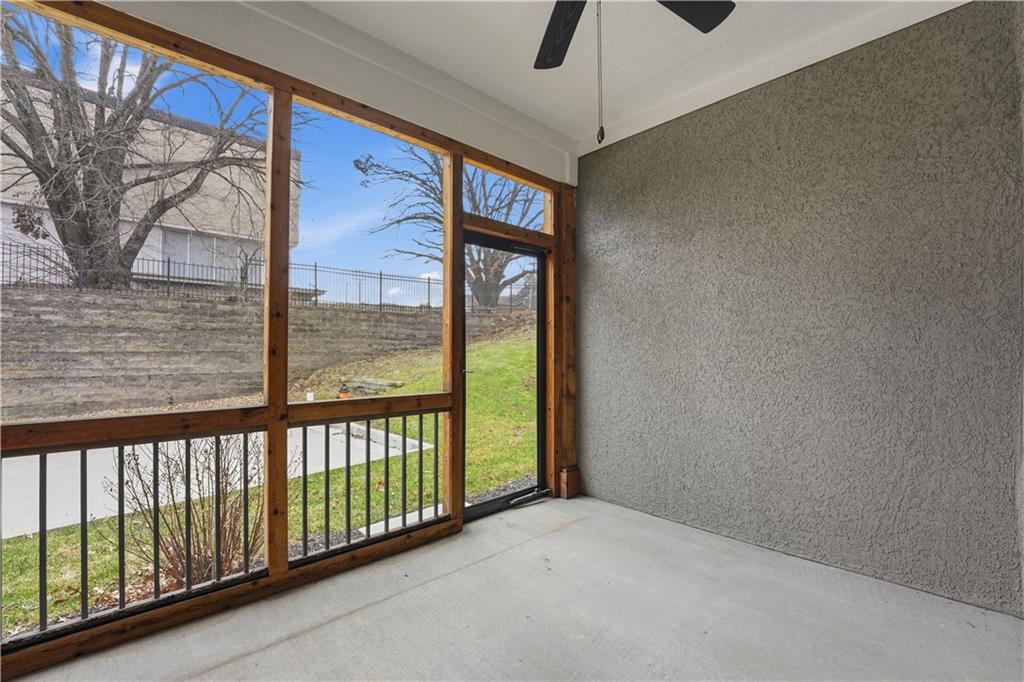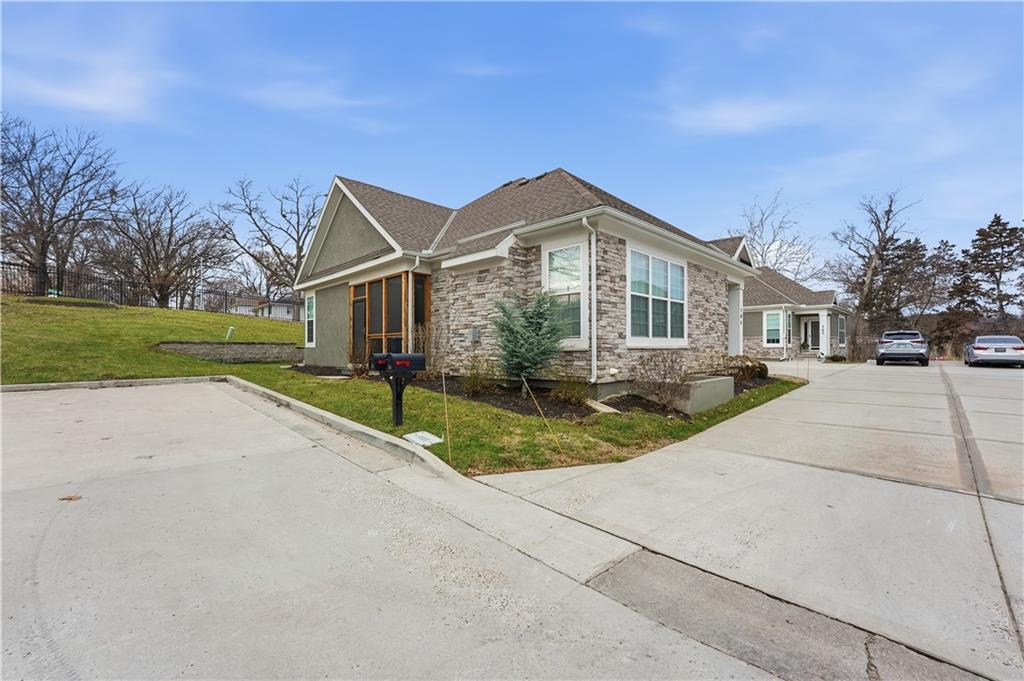 Discover a highly sought-after gated community right in the heart of South Kansas City! This stunning Lambie twin villa has three bedrooms and three full baths. The open concept floor plan invites you into the cozy great room, complete with a beautiful stone fireplace, custom window treatments and ceiling fan. The home showcases hardwood floors throughout the main living areas, tile floors in the bathrooms and laundry, plus solid surface countertops in baths. The elegant chef's kitchen is equipped with quartz countertops, a custom backsplash, a pantry with roll-out shelves, and new stainless steel appliances. The impressive primary suite boasts a large shower, double vanity, and walk-in closet. A sunny dining room opens to a screened-in porch, ideal for savoring your morning coffee. The finished basement, completed just two years ago, includes a recreation room, third bedroom, third full bath, and ample storage space. No detail has been overlooked in this picture-perfect home!