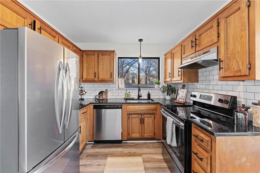 Phenomenal value for a 4-bedroom, 3-full-bath, 2-car-garage home in the coveted Quivira Falls community of Overland Park. The main level features a spacious living room with fireplace, kitchen, four bedrooms, three full bathrooms, and hall laundry—all conveniently on one floor. Vaulted ceilings in the living room and primary bedroom enhance the open, airy feel. The fully finished basement provides a bonus primary suite along with ample storage. An attached two-car garage adds everyday convenience. Quivira Falls offers outstanding amenities including two pools, tennis, pickleball and basketball courts, a clubhouse, and walking trails. Tastefully updated throughout, this home appraised at $325,000 in 2024 and is ideal for families, individuals, or investors seeking exceptional space with minimal maintenance. The HOA covers water, trash, snow removal, lawn service, pools, clubhouse, playground, courts, and stucco maintenance. This home delivers the perfect blend of space, convenience, and value in the heart of Johnson County.