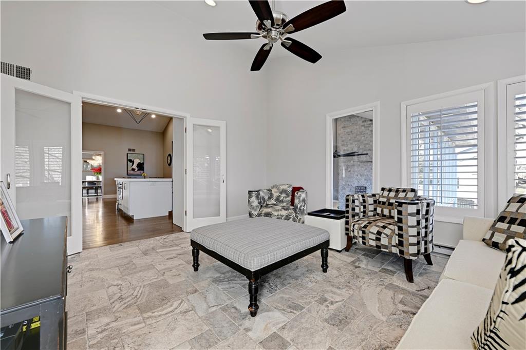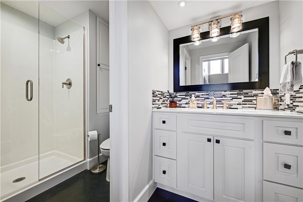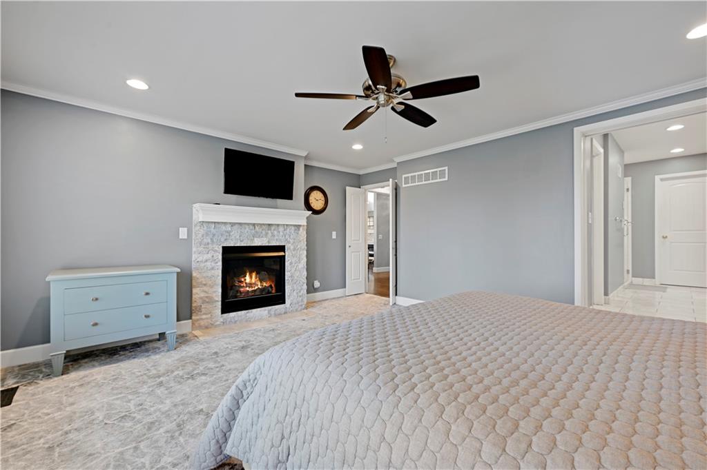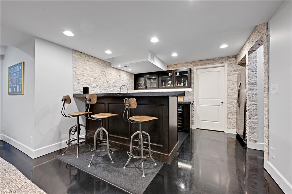 Incredible, totally updated custom contemporary home in Longwood Forest! This one-of-a kind reverse offers 4 bedrooms and 4.5 baths and truly shows like a model home! Charming main level living features a stunning gourmet chef's kitchen with quartz countertops, stainless steel appliances, and a spacious eat-in breakfast area, perfect for entertaining family and friends. Enjoy cozy gatherings in the four season room with tiled floors, abundant windows, and access to a convenient deck ideal for grilling. Beautiful hardwood floors throughout. The elegant dining room showcases a striking light fixture and opens to a darling composite deck! The inviting living room features a warm fireplace for relaxing evenings. The main level also includes a versatile secondary bedroom or home office with a fabulous full bath. The luxurious primary suite boasts brand new carpet and a spa-like en suite bath with heated marble floors. Plantation shutters throughout add timeless elegance. The expansive lower level is an entertainer's dream, featuring built ins and a dramatic floor to ceiling stone fireplace, two spacious bedrooms with accompanying baths plus a large recreation room complete with bar, wine area and space for a pool table and more.. Step outside to the screened-in lower-level porch, perfect for watching the big game! This spectacular home is convenient to shopping, restaurants, and highways! A rare opportunity in an exceptional neighborhood! Don't miss the truly one of a kind home!