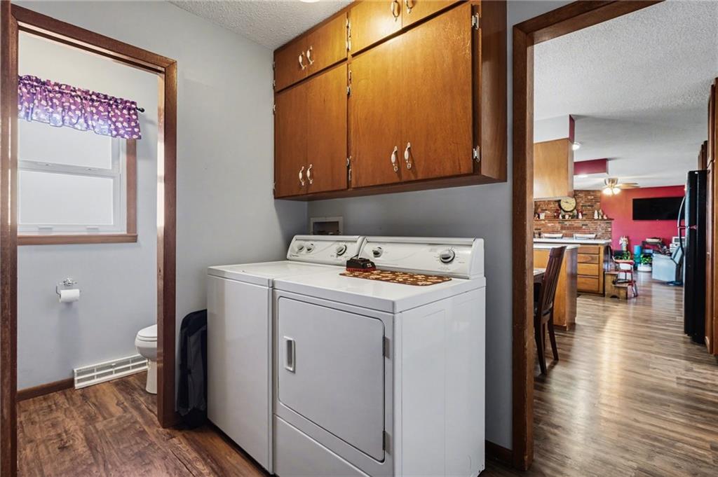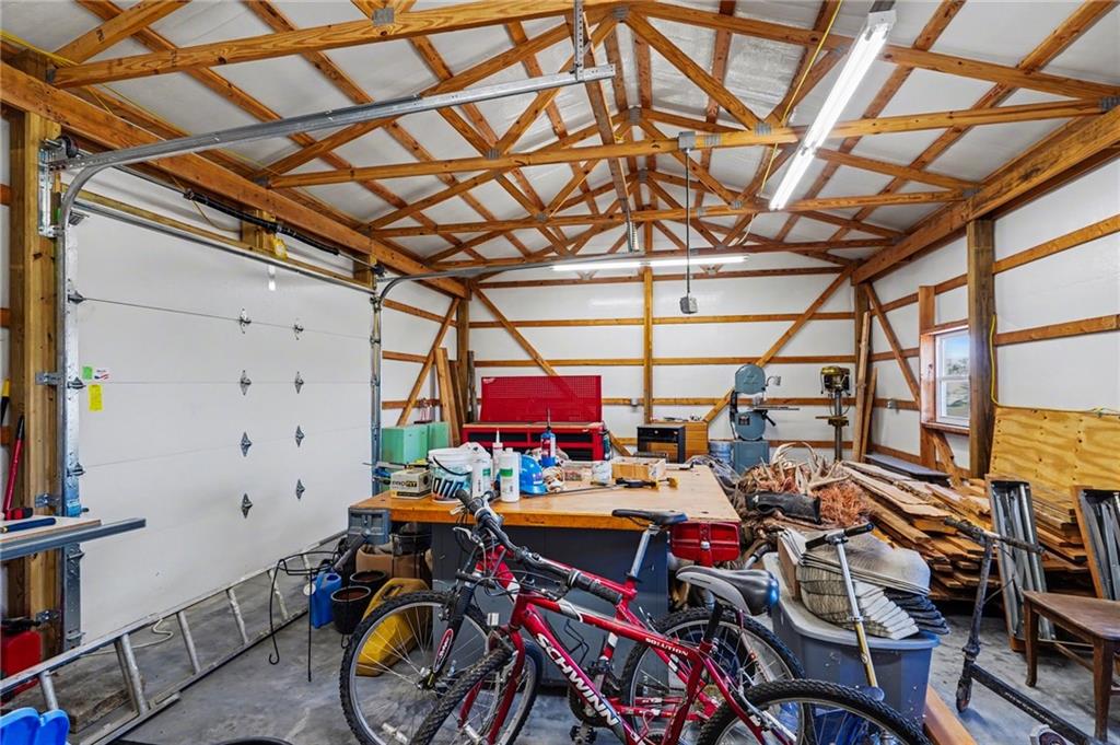 Beautifully updated ranch home with extensive improvements throughout. Updates include new flooring, remodeled kitchen, updated siding, roof and new guttering. Both bathrooms and the laundry room have been remodeled. Home features all new exterior doors, including sliding door and garage door, plus an HVAC system installed in 2015. The partially finished basement offers a conforming bedroom and lots of storage room and with a walk-up exit. Additional highlights include a new metal shop, new carpet and vinyl flooring, foundation repair completed in 2023, yard re-seeded and leveled in 2024, and a new deck added in 2024. Enjoy the hearth room with a beautiful brick fireplace. Located in town yet offering a country feel, with space for cattle or horses—or the option to rent out the back pasture. Pond on property. Truly move-in ready with the convenience of town living and the charm of the countryside.