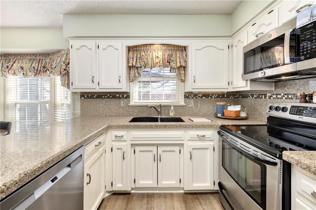 Lovely 1.5 Story in Quivira Meadows. Quivira Meadows is a small neighborhood with only one way in and one way out of the subdivision. This spacious & well cared for home has so much to offer! The kitchen has been updated with newer SS Appliances & Granite Counter Tops also has an eat in area w/bay window. The laundry and half bath are located right off the kitchen. There is a large Great room with vaulted beam ceiling and a cat walk that over looks the room. The main floor also hosts a formal dinning room and large bonus room w/window seats for office or additional tv room. The master suite is also on the main floor w/walk-in shower and double vanity. The 3 generous sized secondary bedrooms are on the second level w/updated full bath w/Granite vanity top! The lower level has some finished areas for additional living space or work out room. The home has upgraded windows and nice sized deck for grilling or entertaining. The location is hard to beat with quick highway access. Great Shawnee Mission South school district.