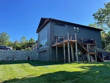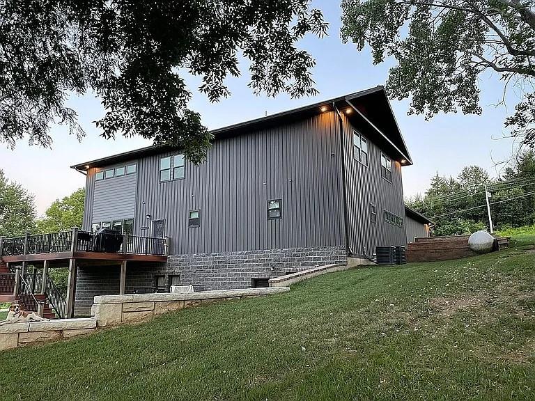 5835 sq foot of bliss and beauty on .85 of an acre. Main level has 2160 sqft of a wide open living room and kitchen area with a 1/2 bathroom a walk in pantry and main floor laundry room. The master bedroom is absolutely gorgeous with a huge master bathroom and walk in closet. The master bathroom boasts a custom corner jetted tub along with his and hers sinks and a great big walk in shower to escape the daily routine in with a bench, rain shower head, a hand wand and 4 body heads with dual faucets. A beautiful oversized staircase leads you up to the second level of 1515 sqft consisting of a loft setting area overlooking the main floor living room. The second level also includes two identical large bedrooms with walk in closets and a full oversized bathroom. The walkout basement has 2160 sqft of a rec/living room with a 1/2 bathroom, a mechanical room with a 100 gallon hot water heater and HVAC equipment for the main floor and a 200 amp breaker box. A brick veneer hallway leads to the basement in-law suite with a full bathroom and walk in closet. To finish off the basement there is a fitness room for the active fit person. Then there is the attached garage with a 10” concrete zero entry floor to handle anything. No steps to traverse to get into the kitchen, floor is all one level. The garage is 48’ deep by 56’ wide, 2688 sqft. It has 3-12’x11’ overhead doors 200 amp electrical service and scissor trusses for added ceiling height. The 56’ loft over a full bathroom, insulated work room, and insulated storage room makes storage a snap. A full glass 6’x8’ overhead door between the garage and kitchen makes it unique. A 6” thick concrete driveway leads to all of this. A 26’x18’ composite deck with two tier steps for morning coffee or evening entertainment leads to a stamped concrete patio off the basement entry door. Built with 2x6 exterior walls and TJI silent floor joists and a truss roof. All electric with propane island cooktop and propane heat.