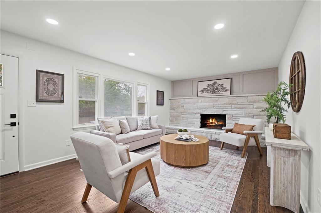Welcome to this beautifully refreshed 3-bedroom, 2-bathroom home in Kansas City, KS! This 1960s gem has been thoughtfully updated with modern finishes while maintaining its classic charm. Step inside to find fresh paint throughout, creating a bright and inviting atmosphere. The heart of the home features a completely updated kitchen with crisp white cabinetry, modern appliances, and stylish finishes. Both bathrooms have been tastefully renovated with contemporary fixtures and design. Enjoy cozy evenings by one of the fireplaces, one on the main level and another in the finished basement, adding warmth and character to your living spaces. The fully finished basement provides excellent additional living space, perfect for a family room, home office, or entertainment area. Additional highlights include a two-car garage and a spacious lot. This move-in ready home offers the perfect blend of classic architecture and modern updates. Don't miss this opportunity to own a beautifully updated home.