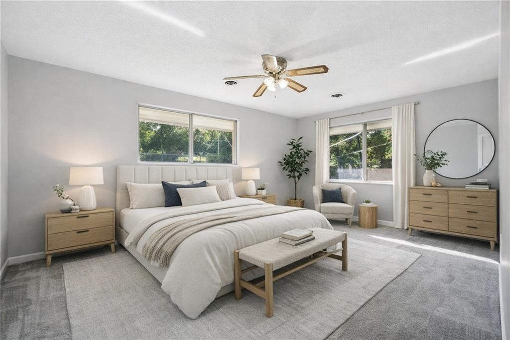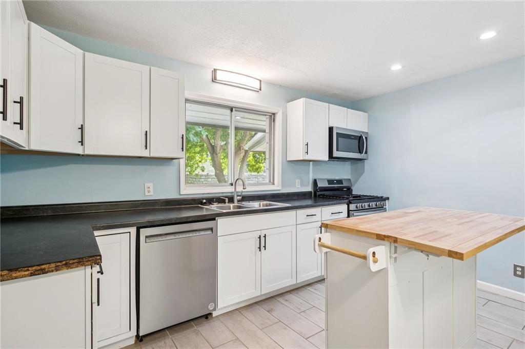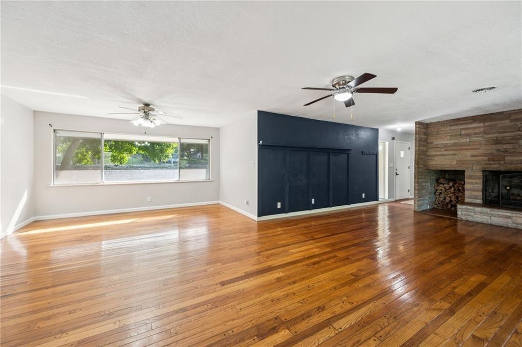Welcome to this unforgettable mid-century modern ranch on a sprawling ~0.88-acre lot backing to mature trees — rare privacy just minutes from city conveniences! This 4-bed, 2-bath home offers versatile living space with thoughtful updates throughout. The full stone exterior, oversized front porch and private fenced yard invite year-round enjoyment. Inside, the main floor features two generous bedrooms and a full bath, while the lower level includes two additional bedrooms, an updated bath and flexible living areas perfect for second living quarters, kids, hobbies, or working from home. Recent improvements include a new roof in January 2025, refreshed kitchen in 2020, new septic system in 2021, updated gutters, basement Andersen windows with transferable warranty, and a new AC zoned for the lower level in 2022. A private drive leads to the rear-facing 2-car garage and handy storage shed. Don’t miss the blend of classic charm and true modern comforts.