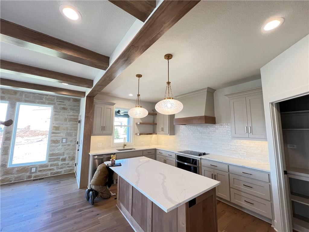 The Destin by Rodrock Homes offers elevated two-story living designed for modern families in Sundance Ridge. Situated on a cul-de-sac, south-backing homesite, this home provides space, style, and connection. The bright, open main level links the great room, dining area, and gourmet kitchen with large island and walk-in pantry—perfect for busy weekday dinners and weekend gatherings. A covered patio extends living outdoors. Upstairs, the private primary suite offers a spa-like bath and spacious walk-in closet, with three secondary bedrooms and a convenient laundry room nearby. Exceptional craftsmanship and thoughtful details throughout. Photos are of a prior model and may show optional features. Enjoy The Village amenities—two pools, clubhouse with fitness center, indoor gym, pickleball, bocce, playground, community garden, and trails—in Blue Valley Schools. Just 11 min to Blue Valley High, 8 min to Price Chopper, 16 min to BluHawk, and 16 min to Heritage Park.